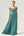 Green Large Floral Sheath V Neck Open Back Bridesmaid Dress with Ruffle Slit