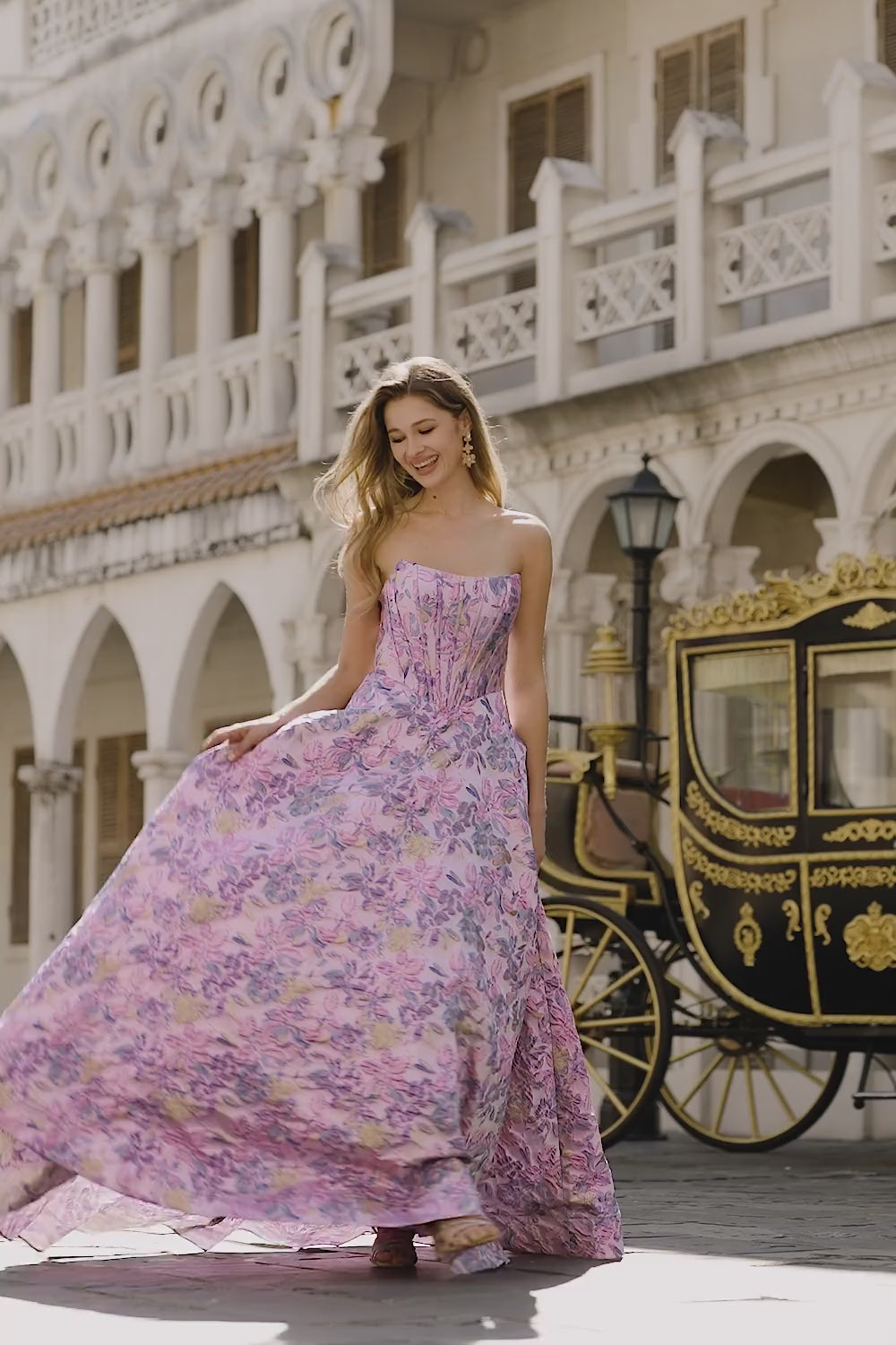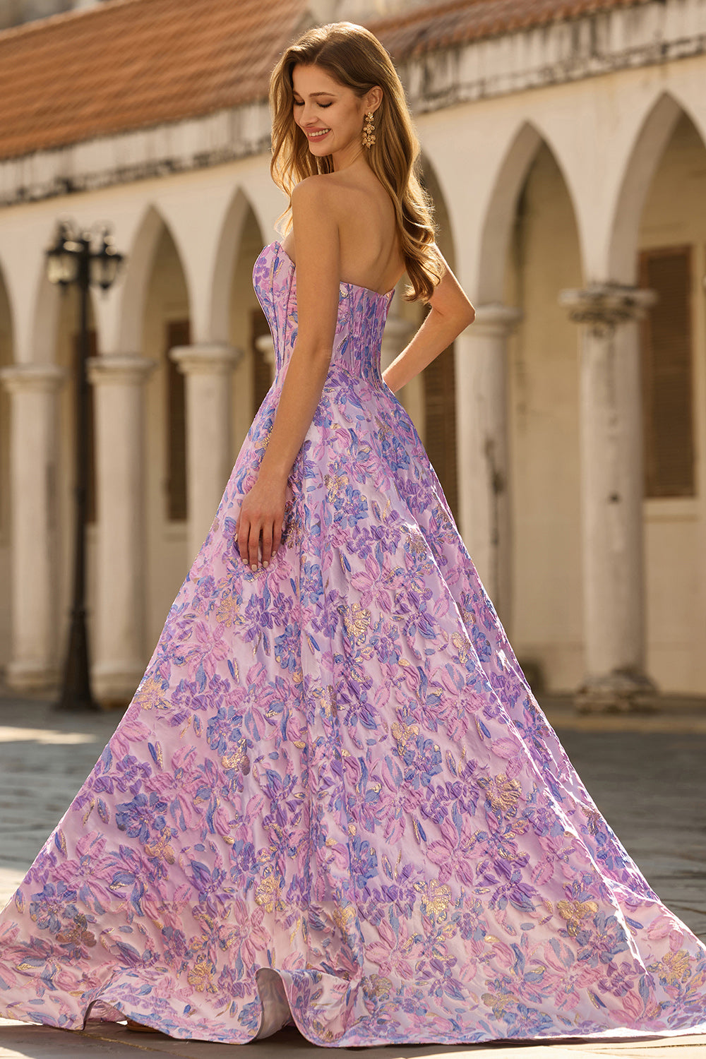Strapless A Line Lilac Jacquard Corset Long Prom Dress