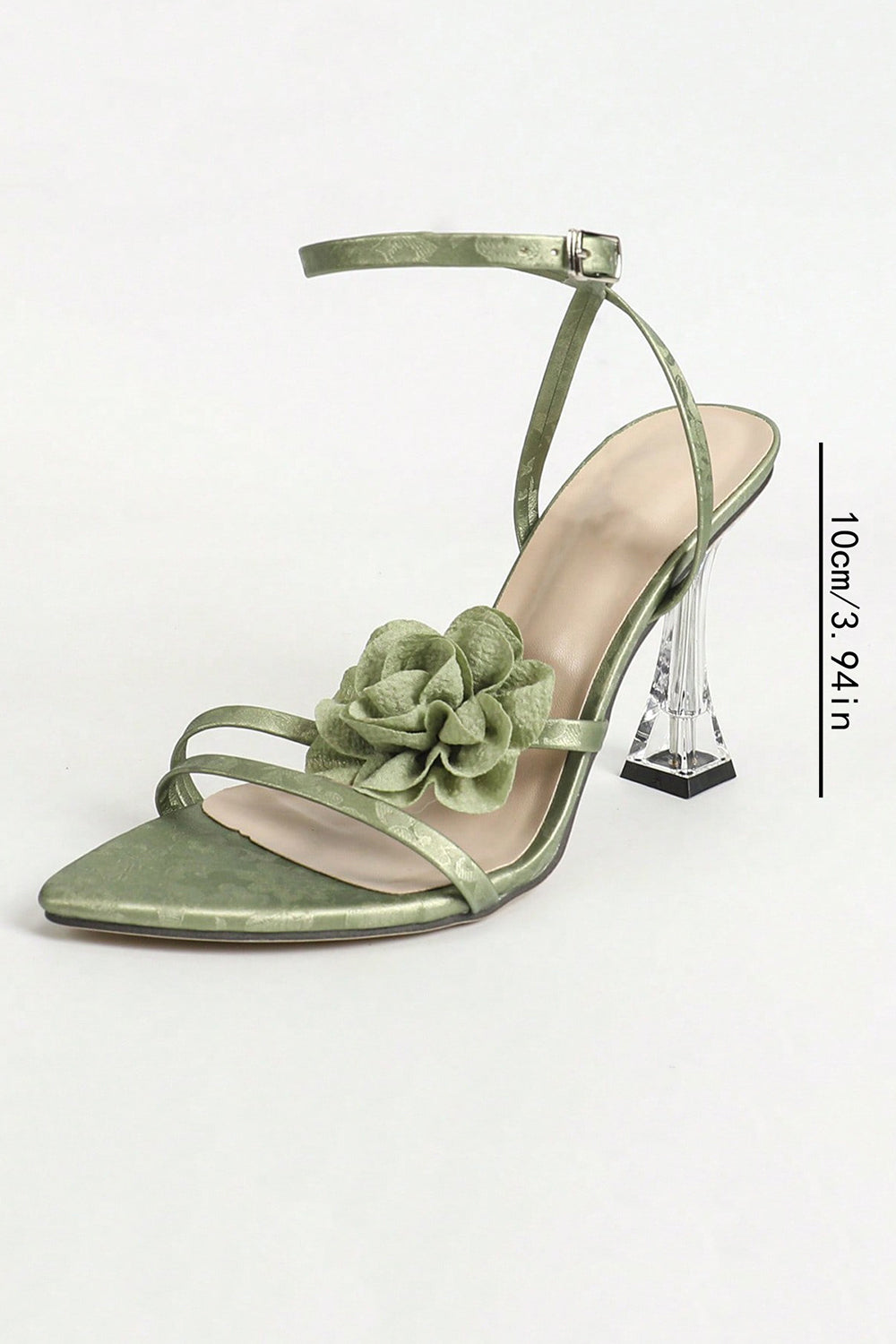 Eucalyptus Floral Stiletto High Heels Sandals with 3D Flower