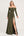 A Line Off The Shoulder Ruched Olive Bridesmaid Dress with Long Sleeves