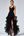 A Line Black Tiered Ruffled Formal Dress with Slit