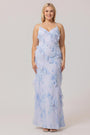 Blue Floral Spaghetti Straps Mermaid Streamer Corset Long Plus Size Bridesmaid Dress with Slit