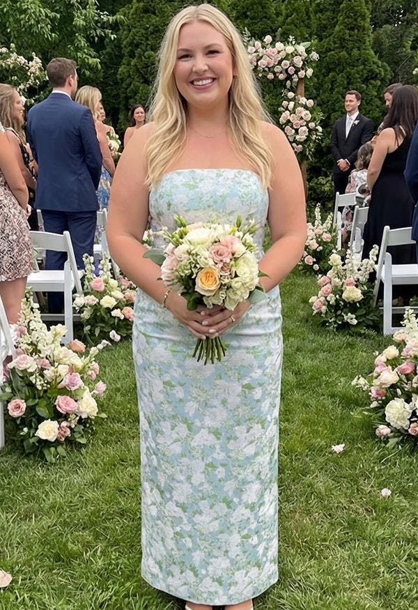 I was a bridesmaid in this dress, and let me tell you—no strapless dress has ever been this comfy! The back slit makes walking and dancing a breeze. 10/10 would wear again!