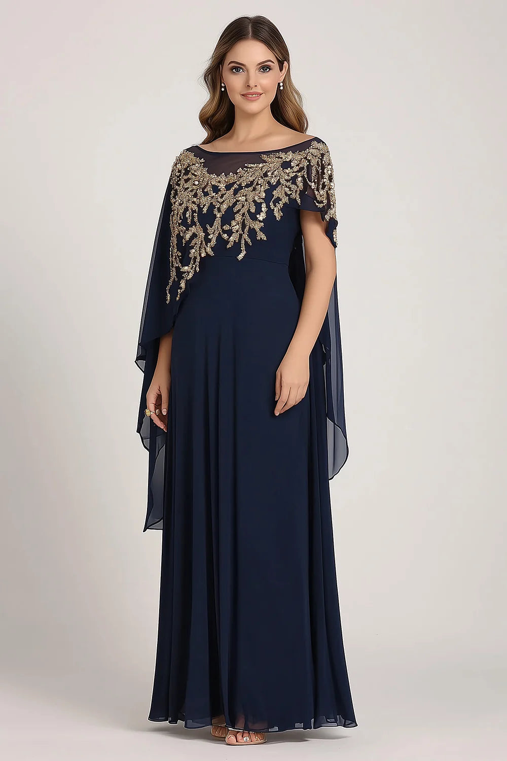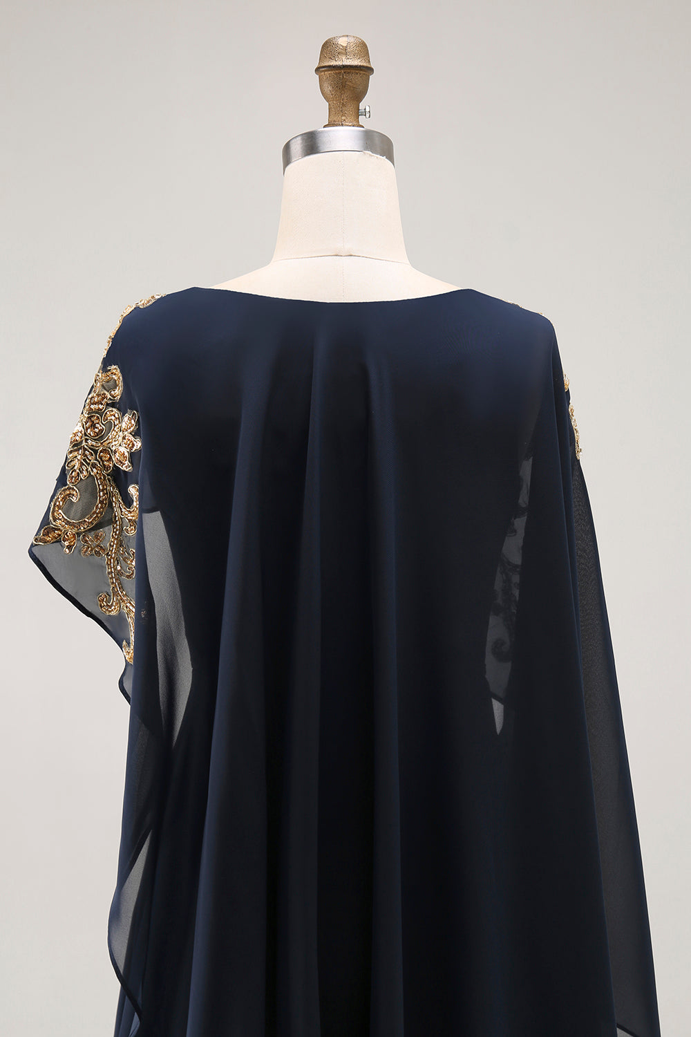 Navy Sheath Chiffon Beaded Mother Of The Bride Dress with Cape