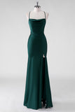 Dusty Sage Mermaid Halter V Neck Open Back Satin Ruched Long Bridesmaid Dress
