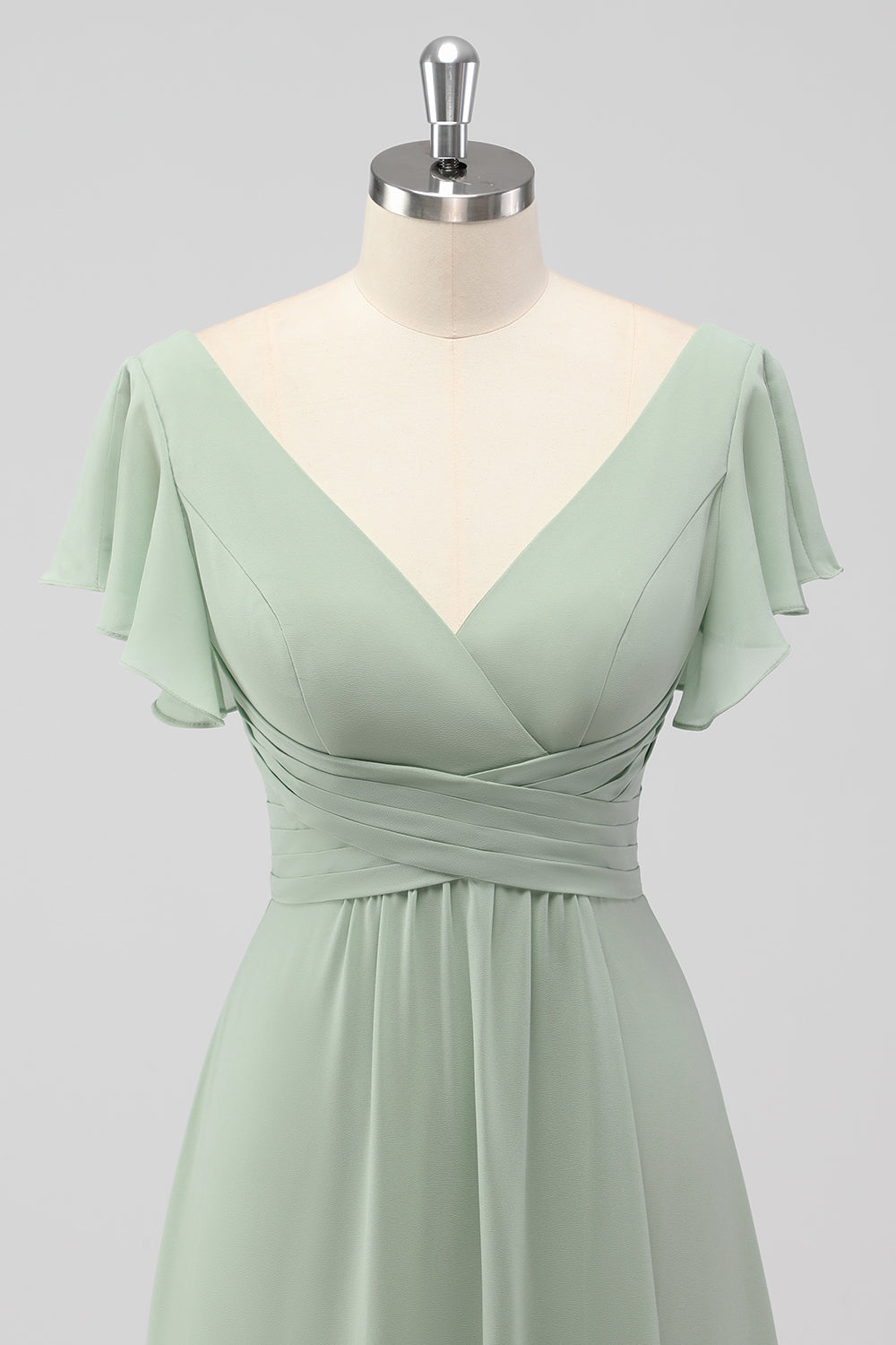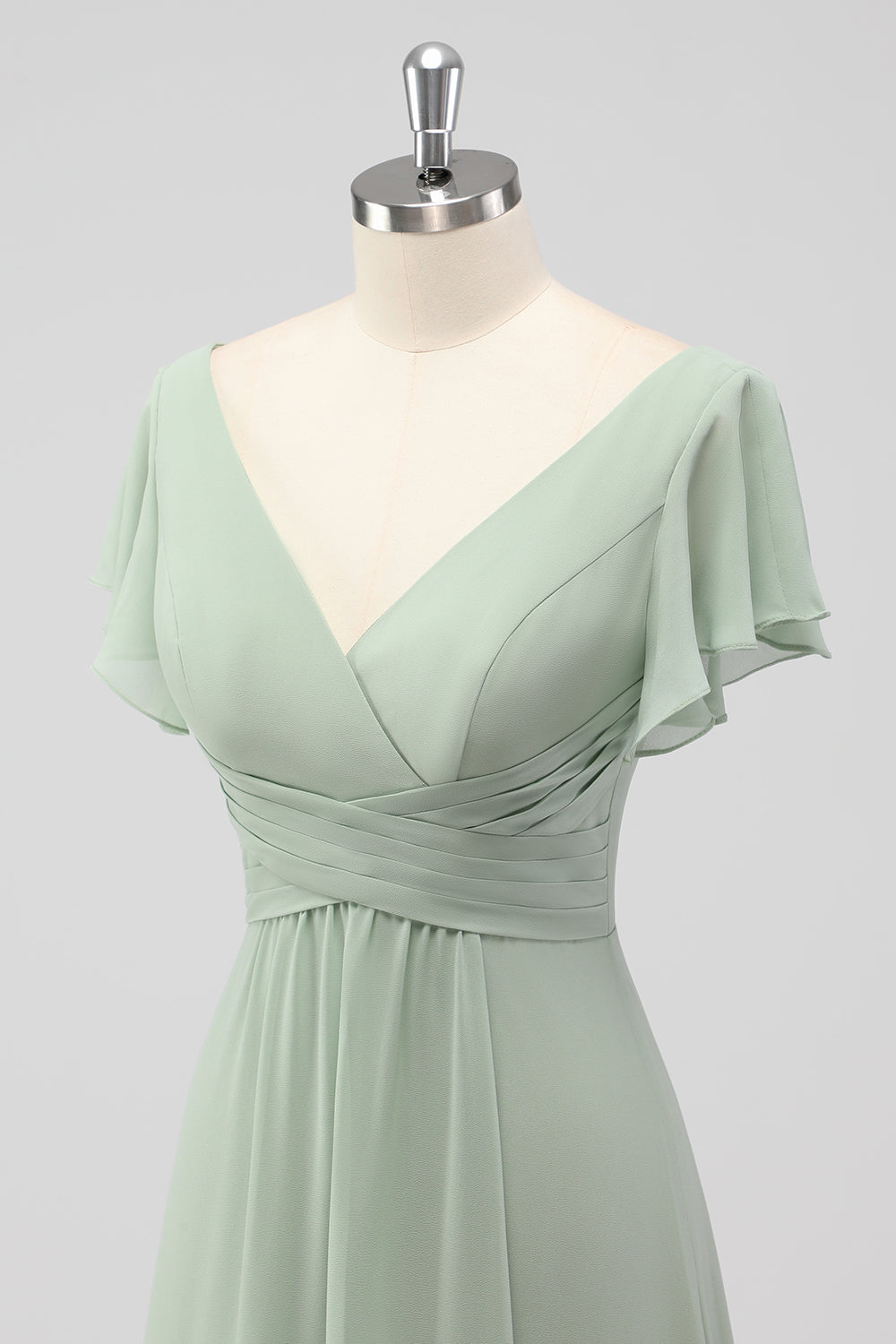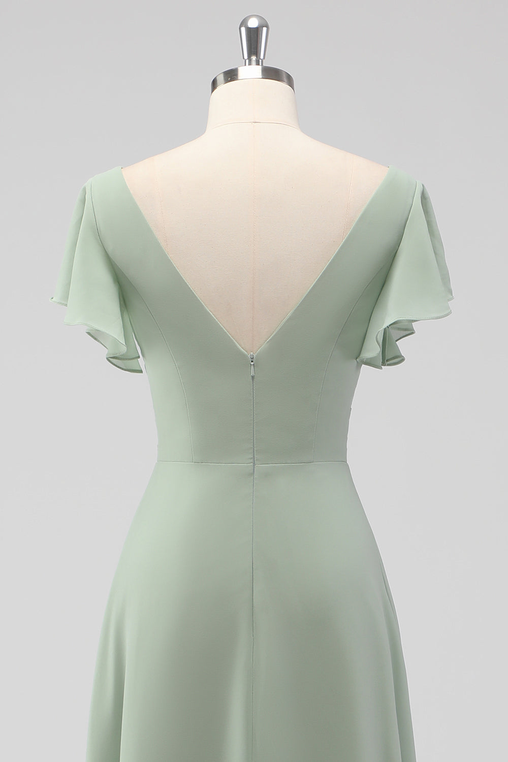Sage Green A-Line V-Neck Chiffon Long Bridesmaid Dress with Slit