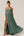 Green A-Line V Neck Ruched Tiered Long Bridesmaid Dress with Slit