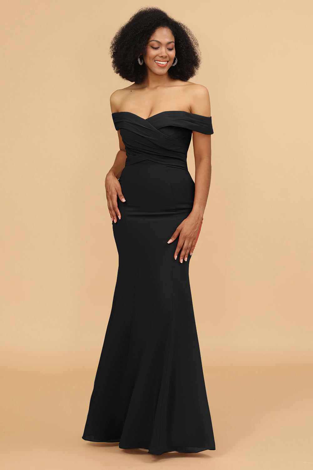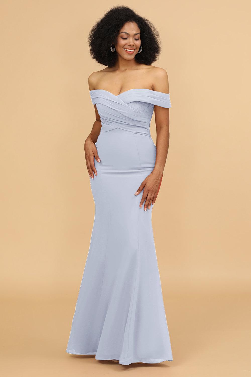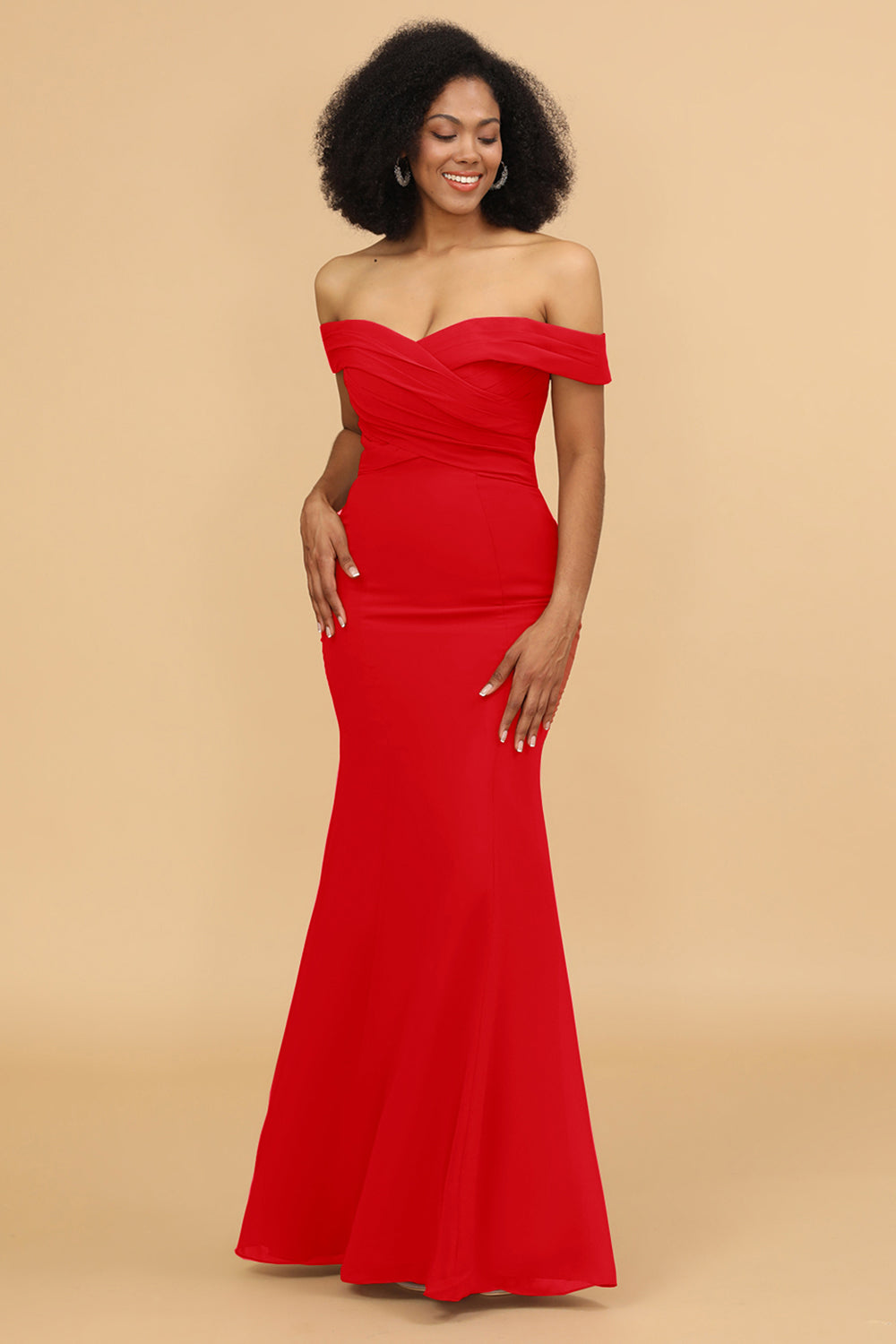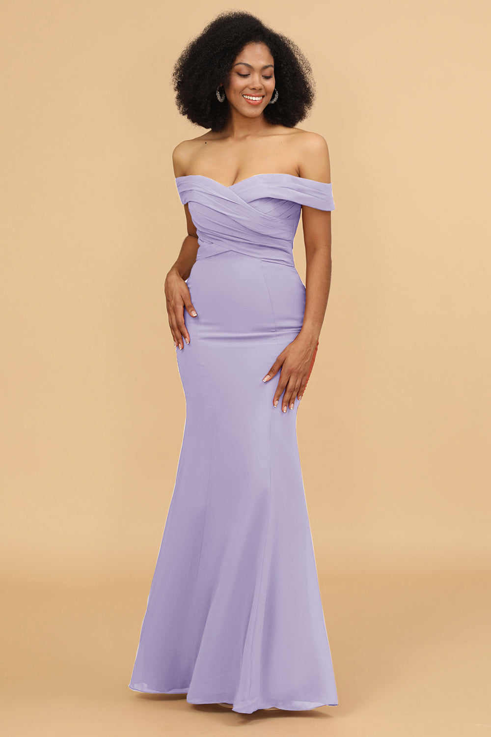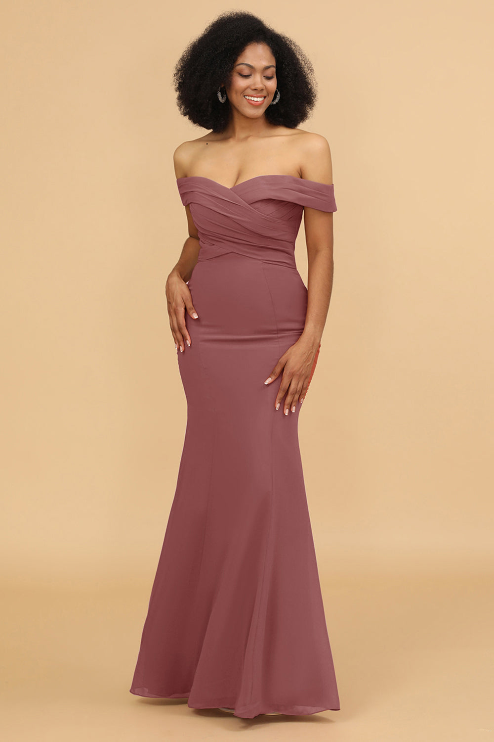 Off the Shoulder Mermaid Ruched Chiffon Bridesmaid Dress