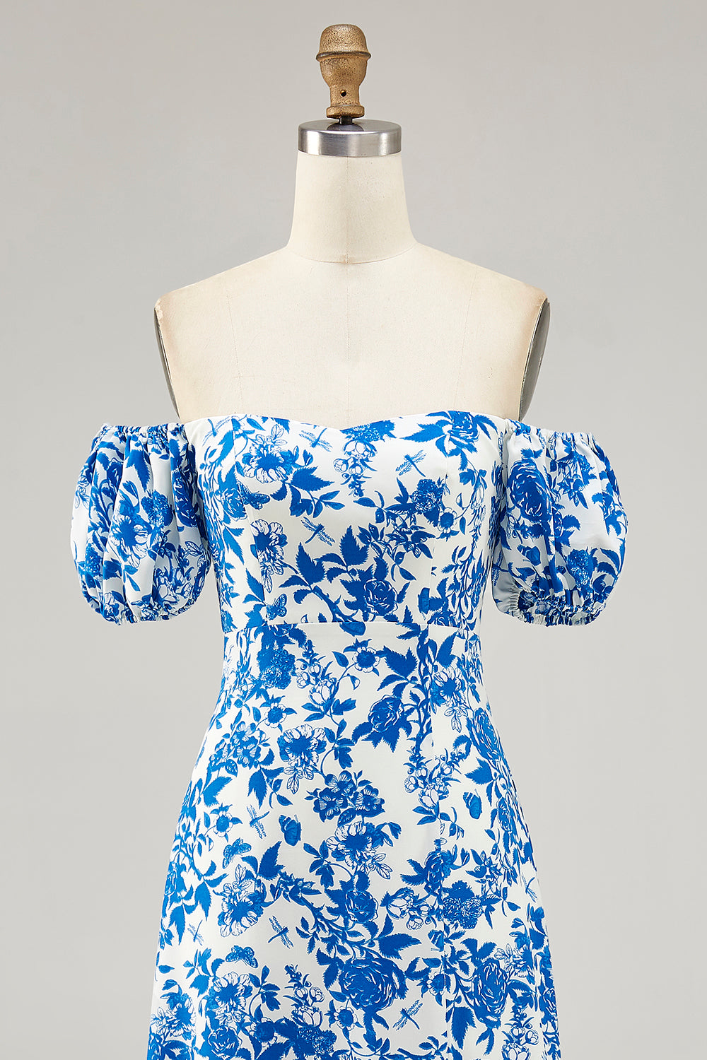 Blue Flower A-line Off The Shoulder Convertible Long Bridesmaid Dress with Slit