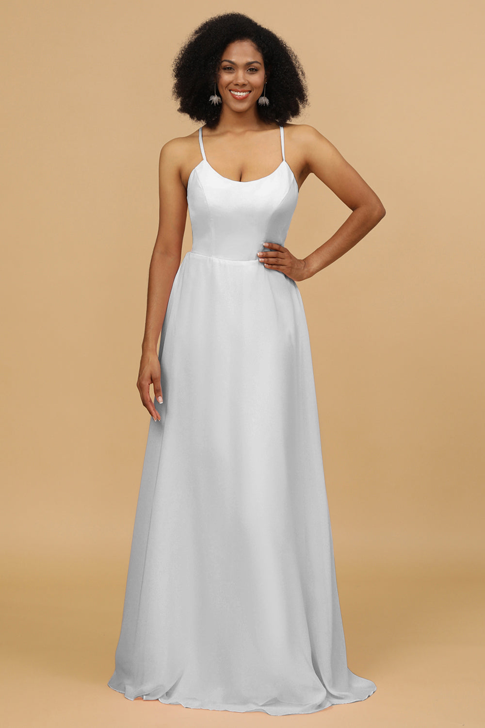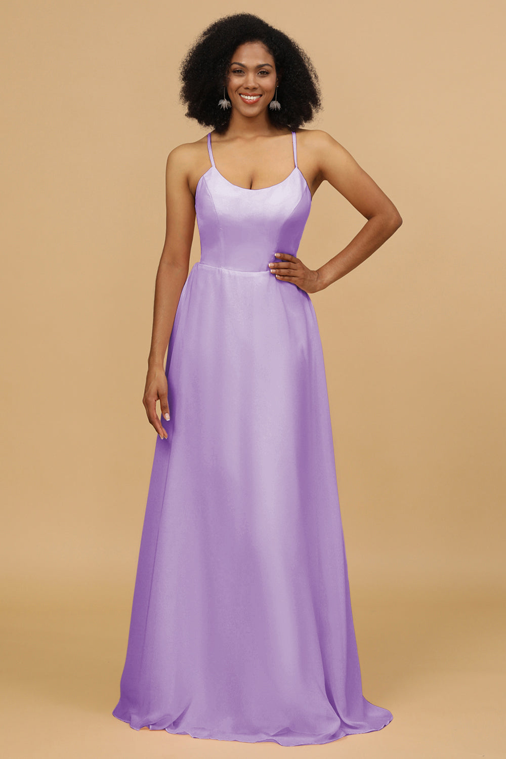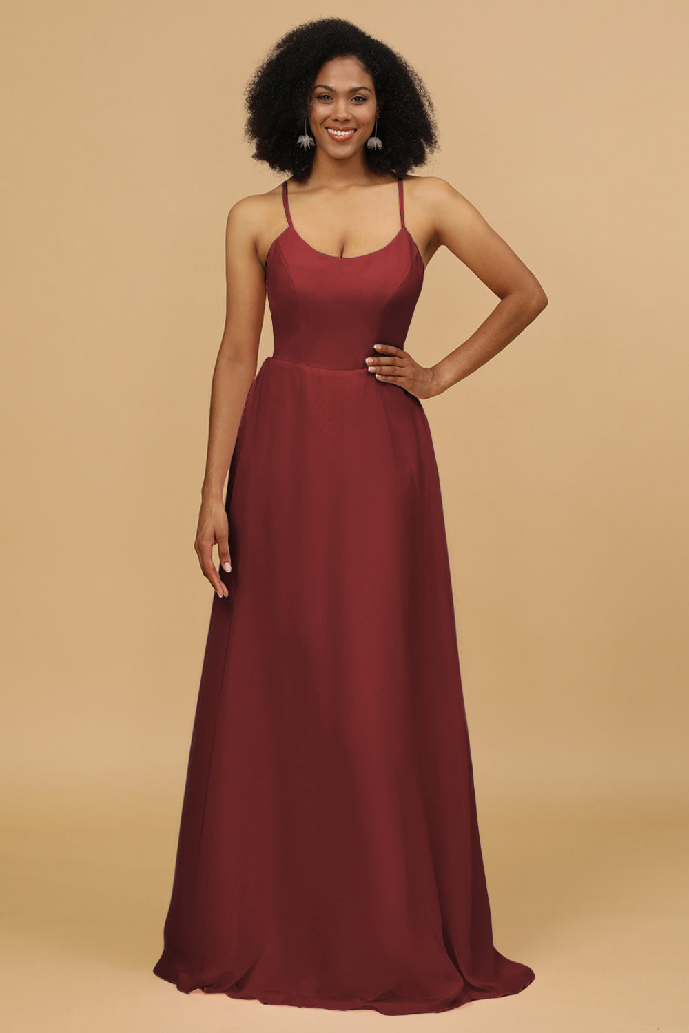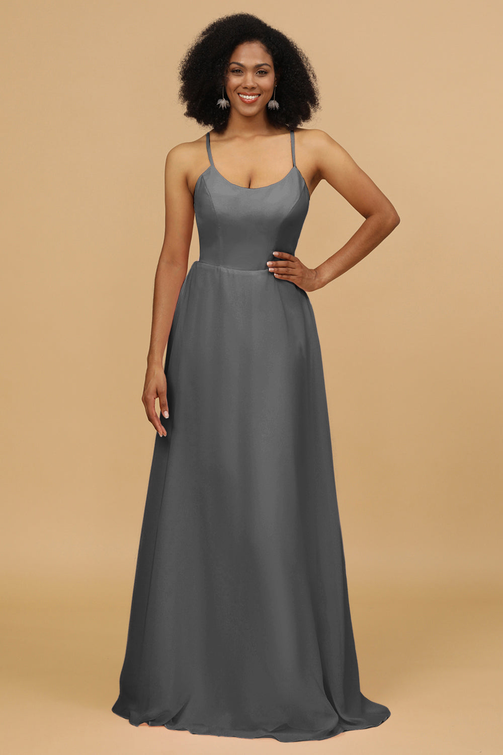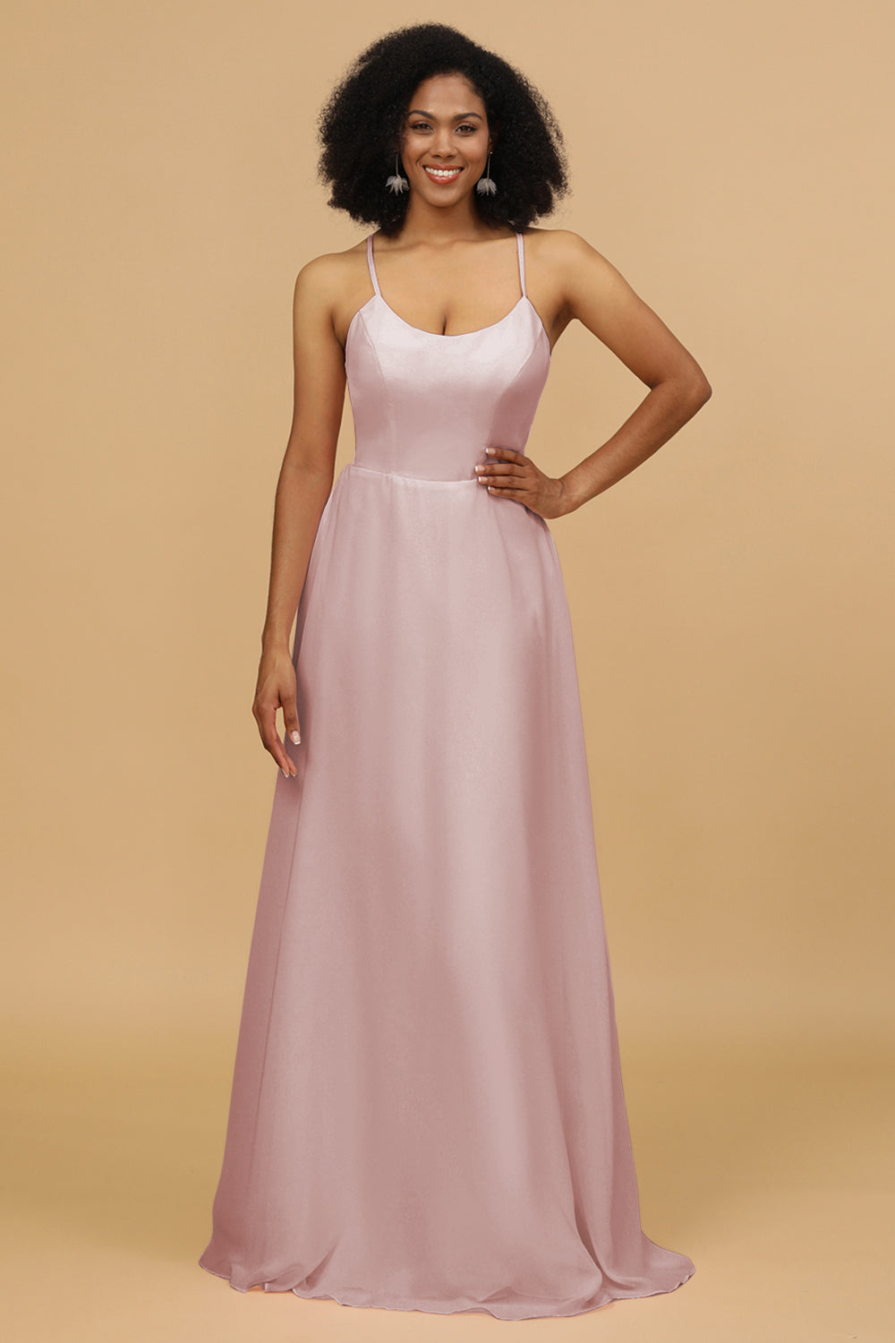 Sheath/Column Spaghetti Straps Long Chiffon Bridesmaid Dress