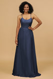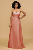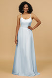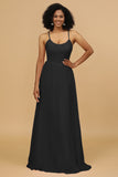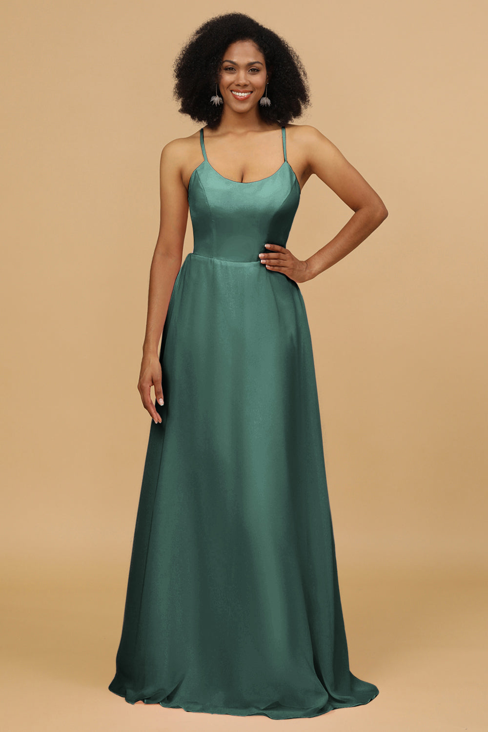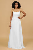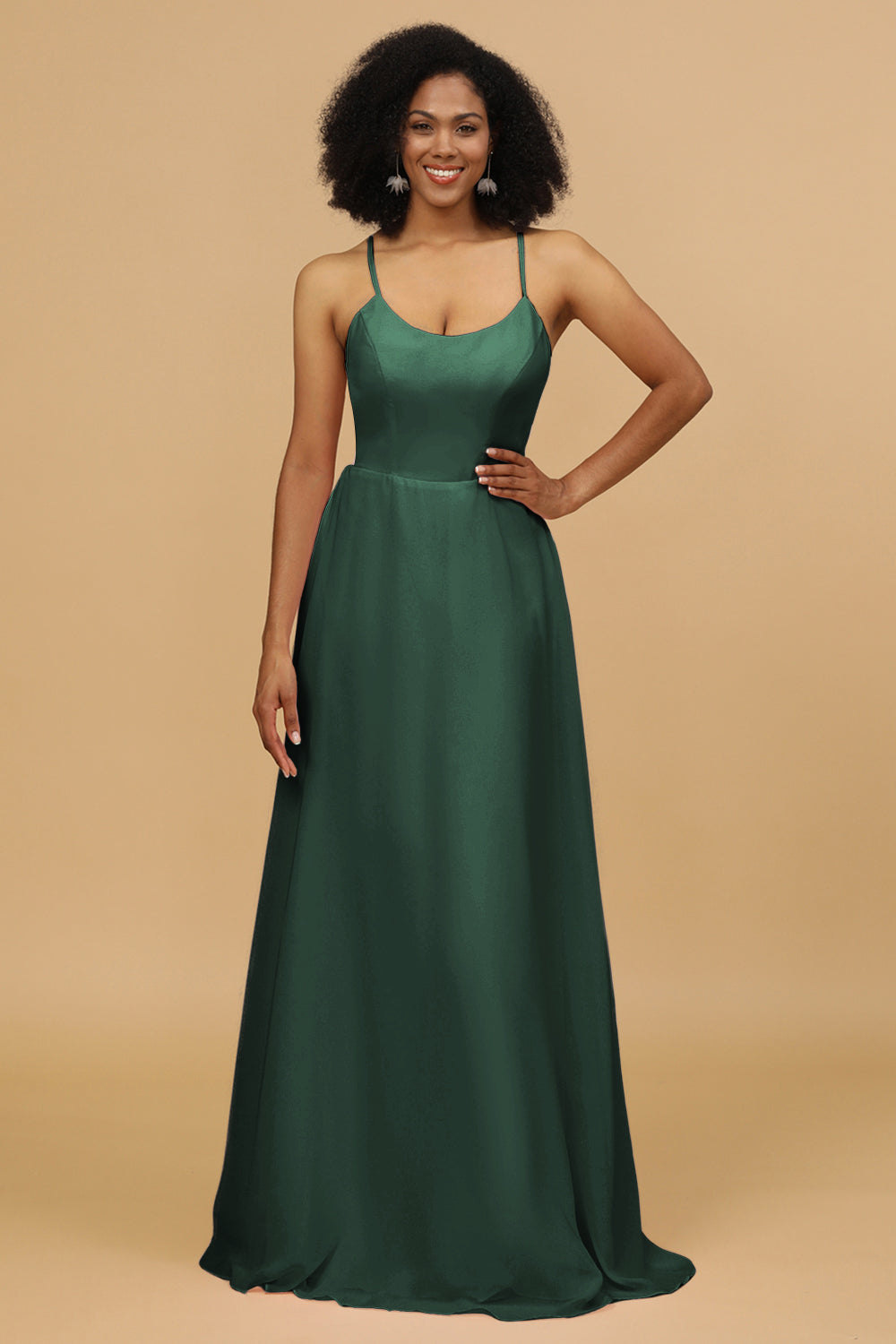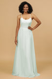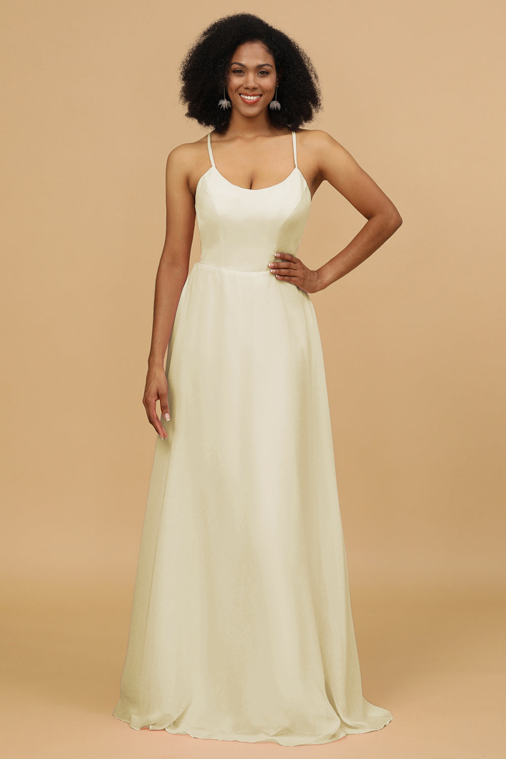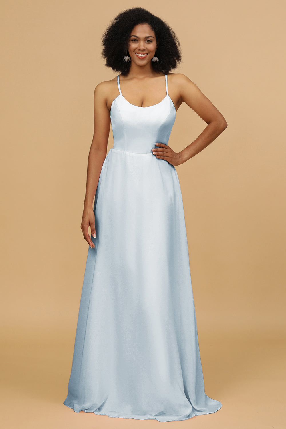 Sheath/Column Spaghetti Straps Long Chiffon Bridesmaid Dress