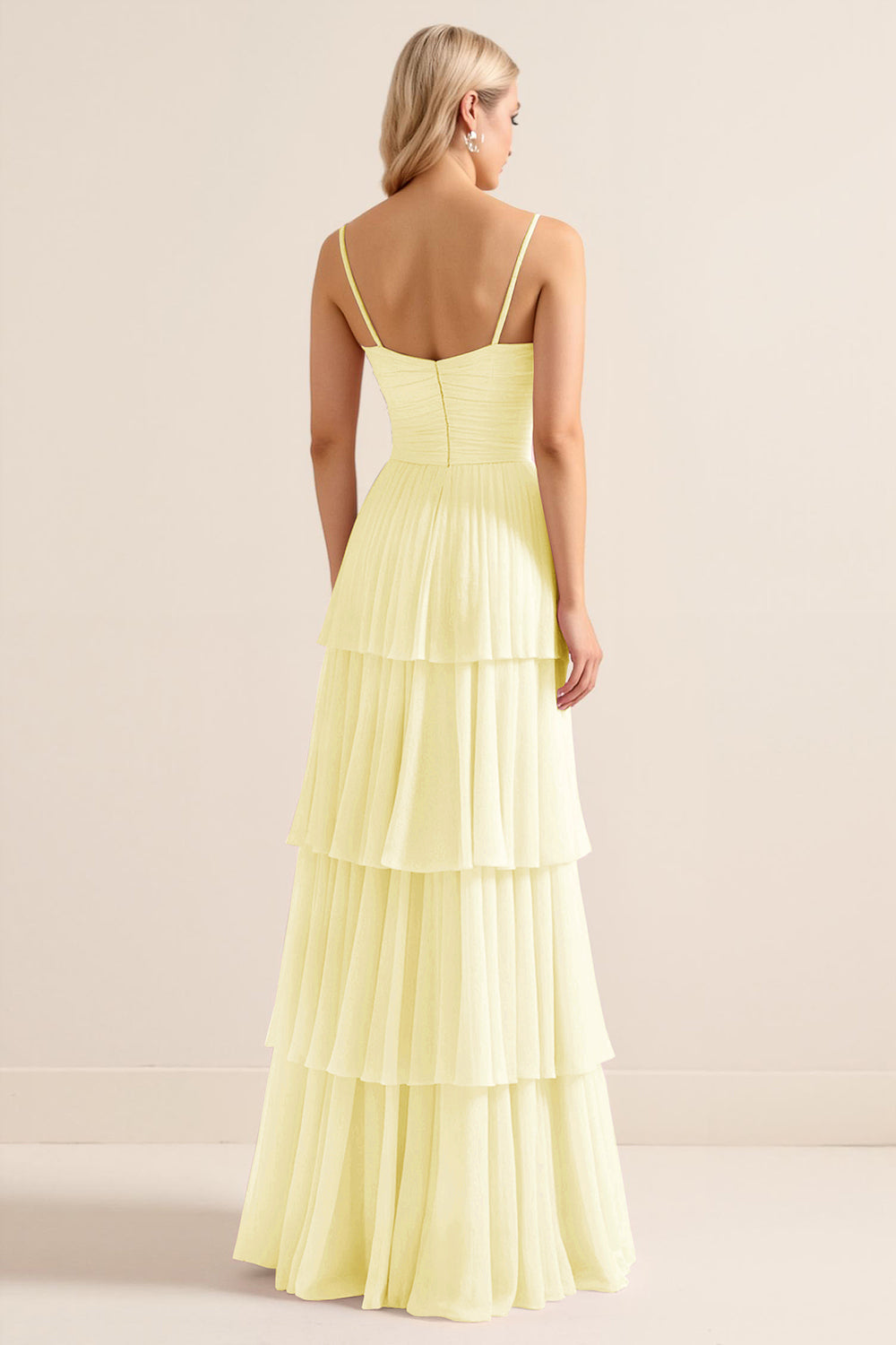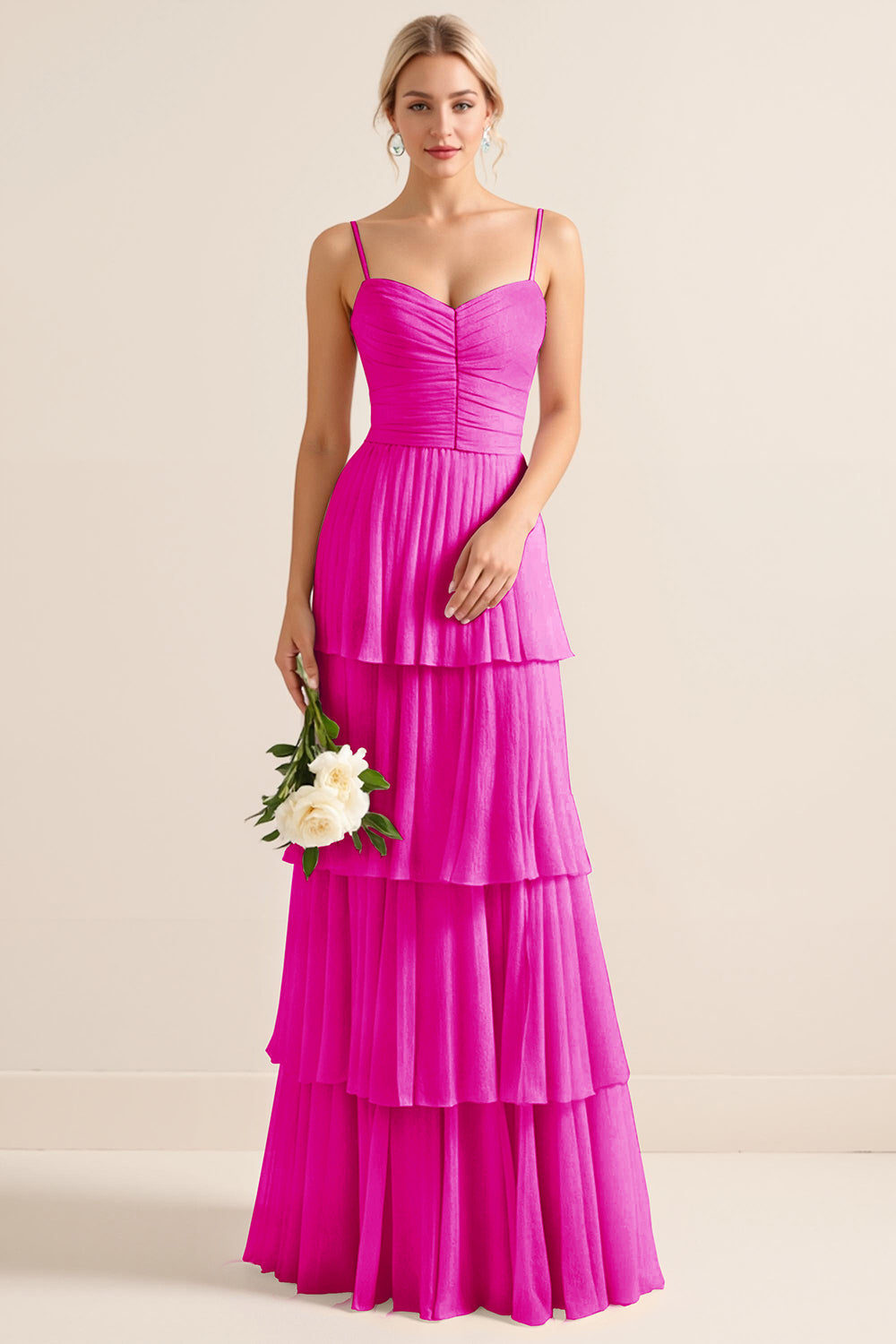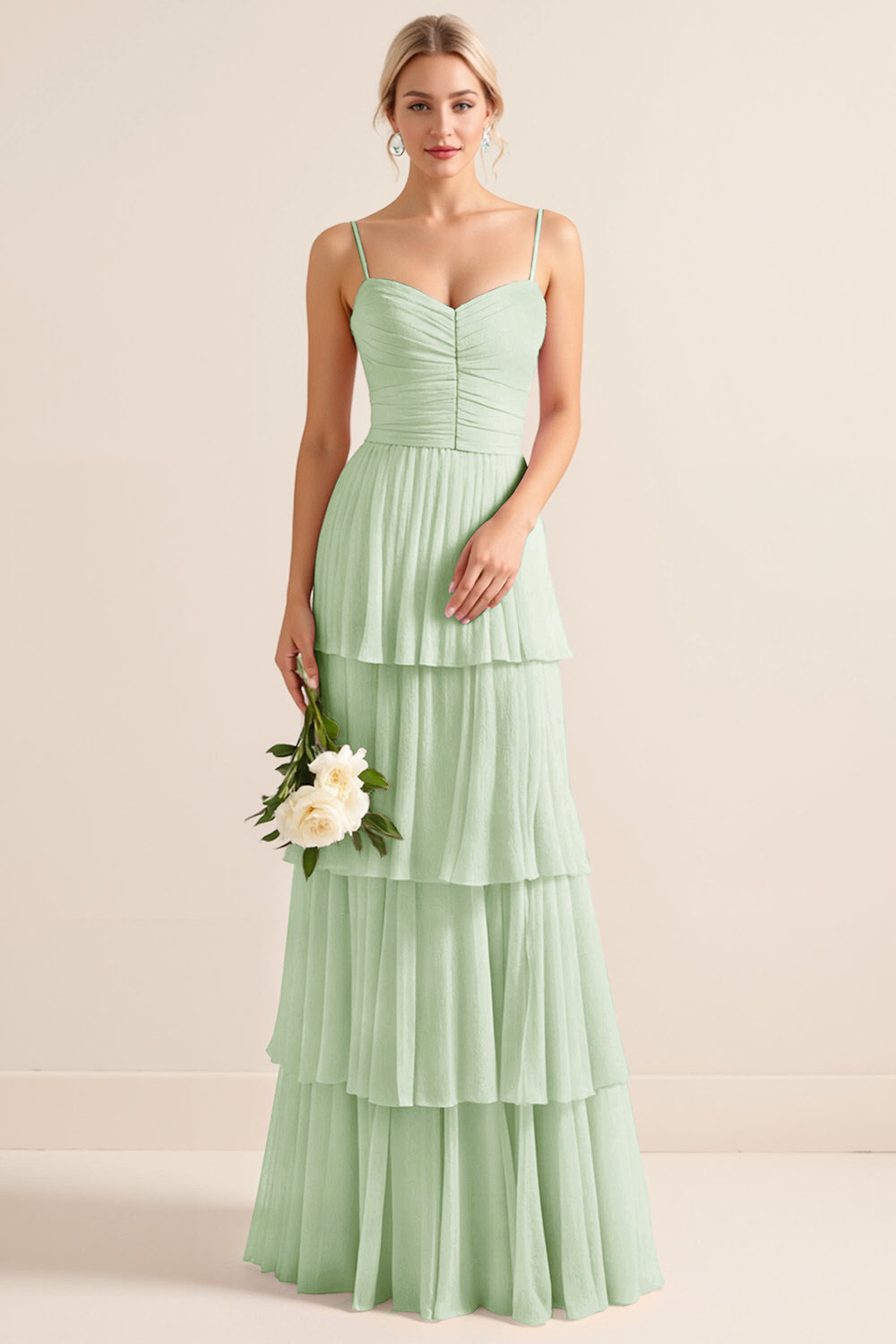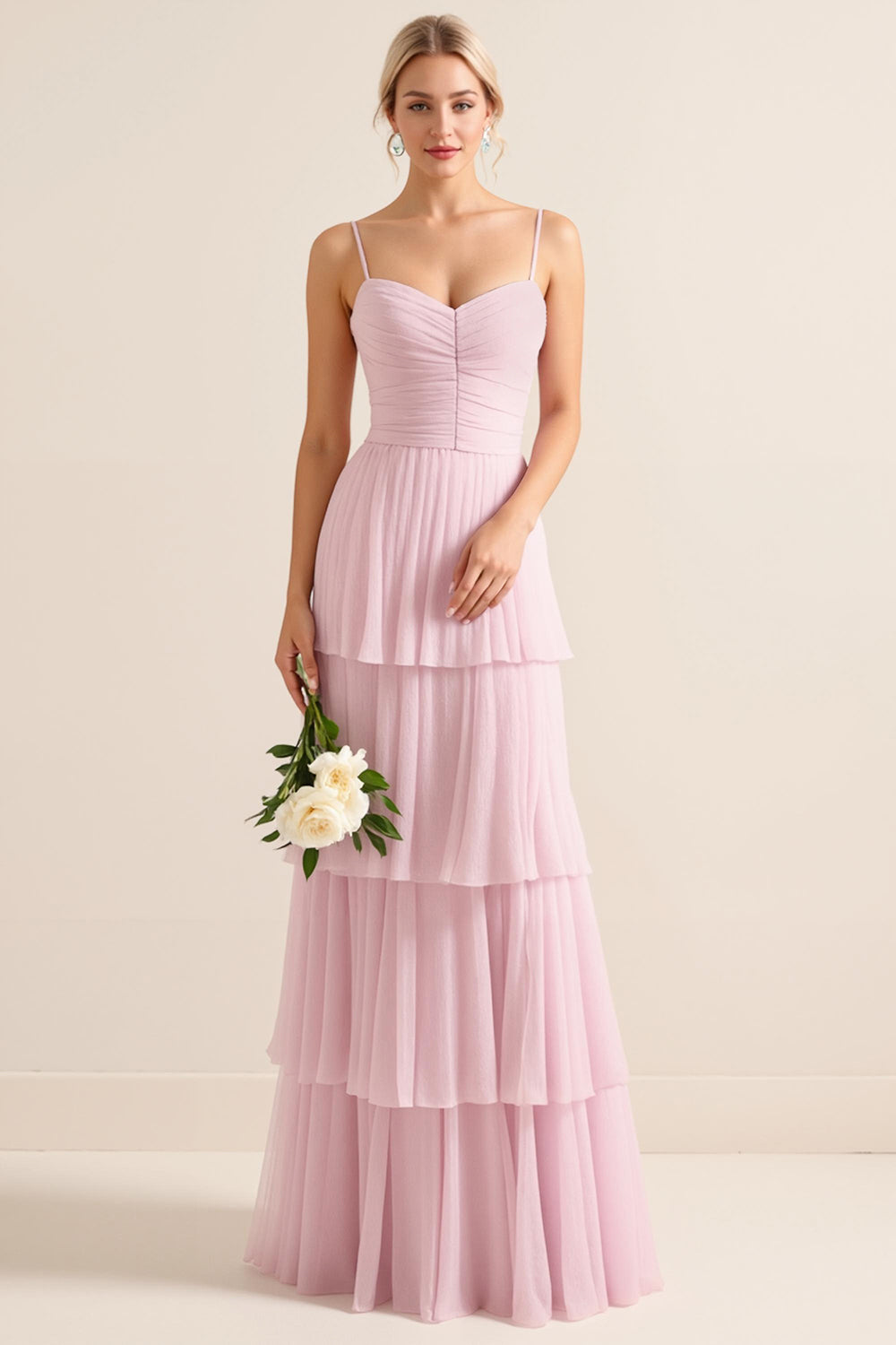 Lilac A-Line Spaghetti Straps Tiered Chiffon Long Bridesmaid Dress