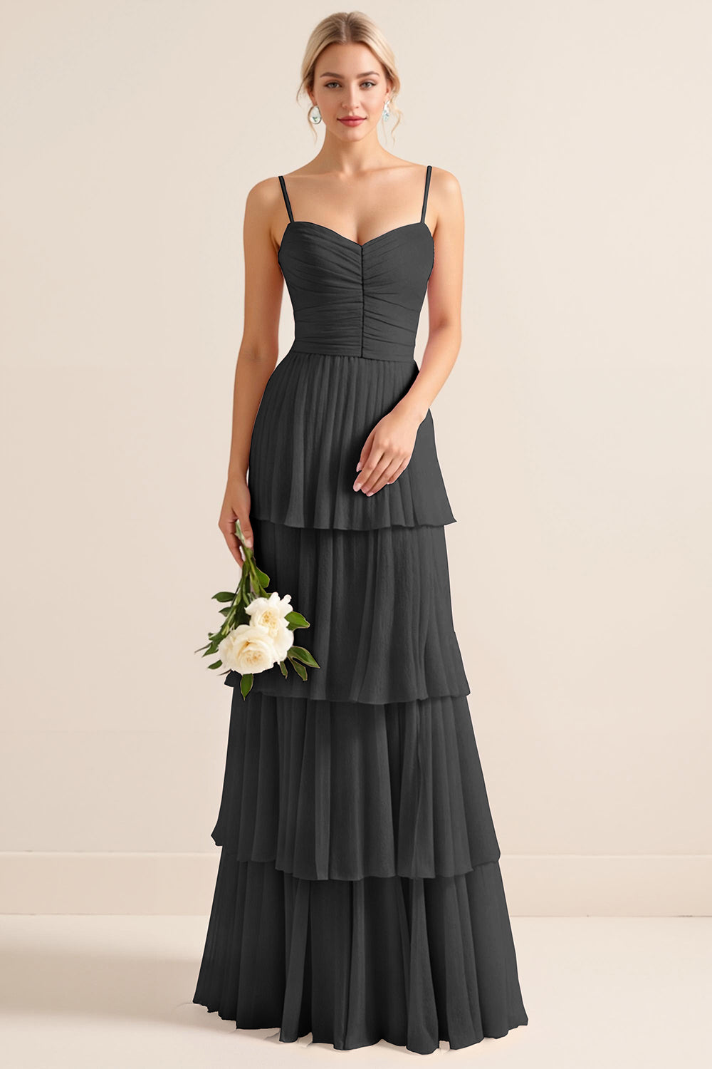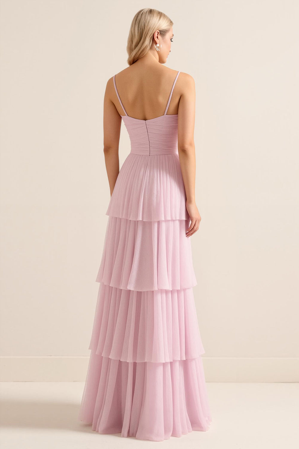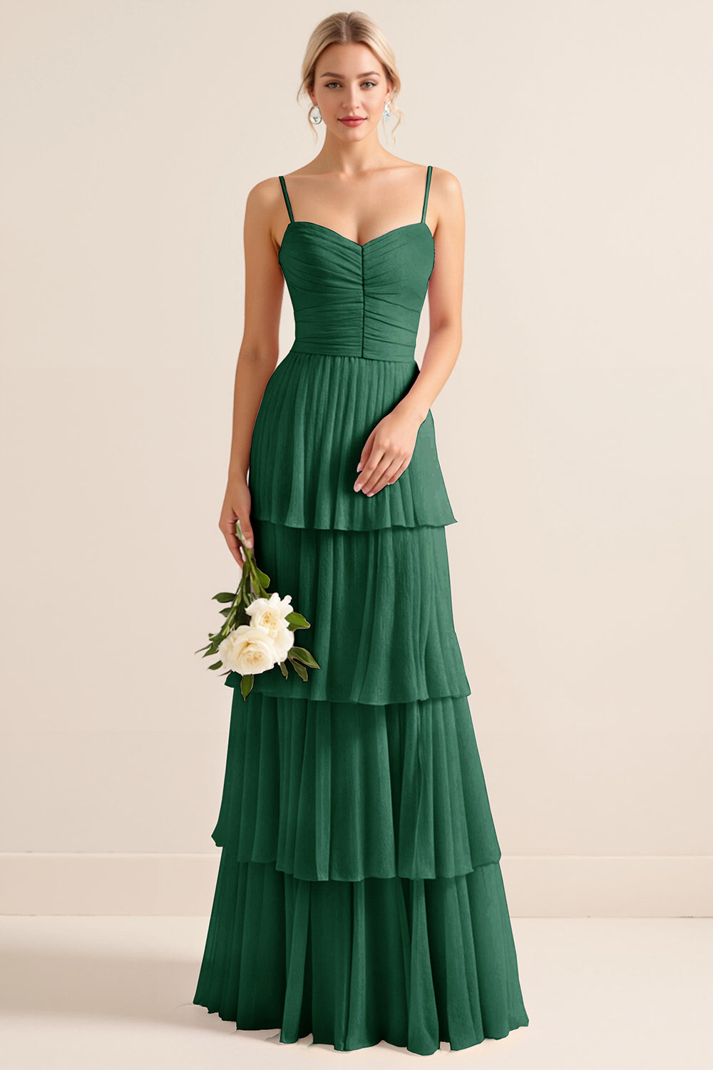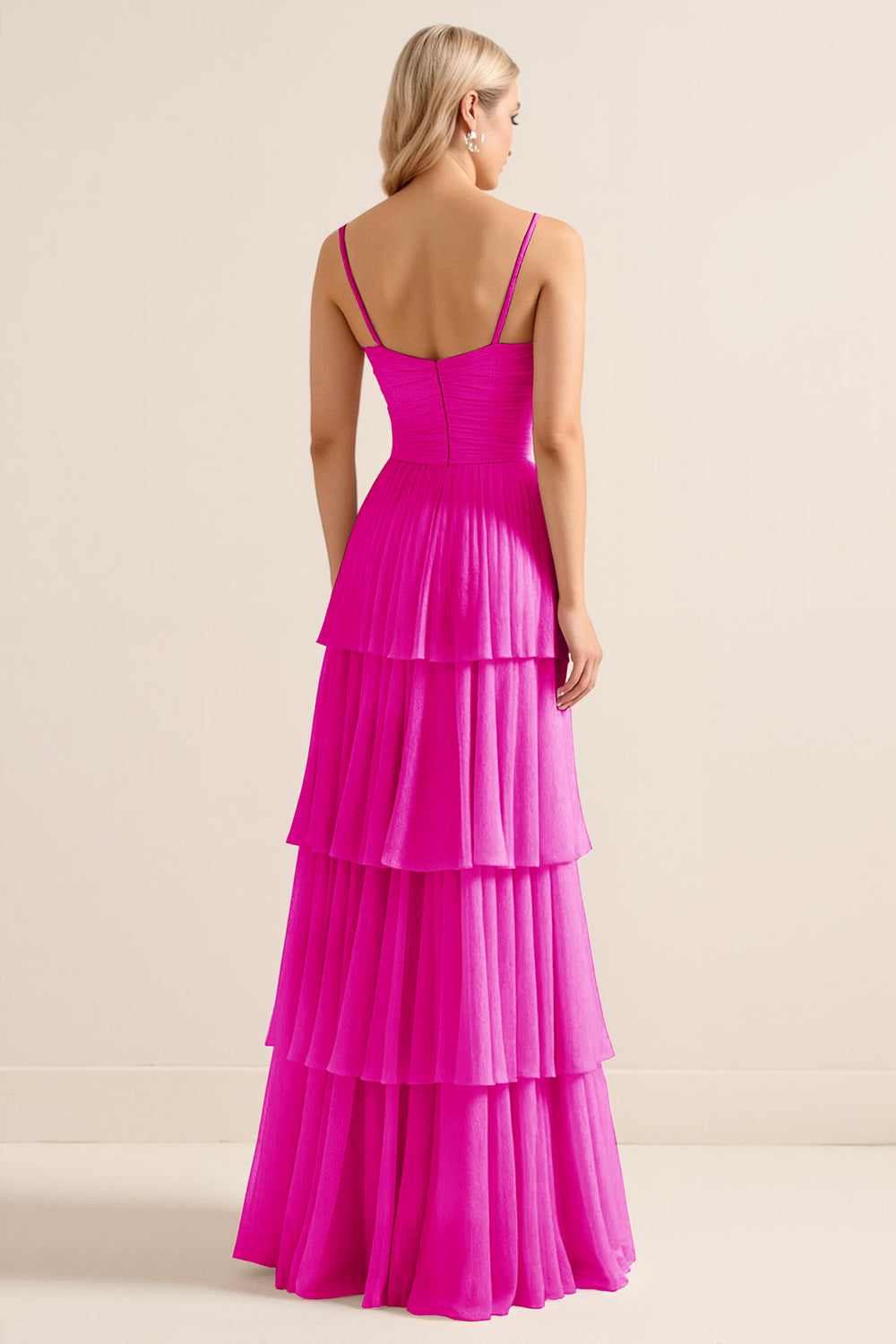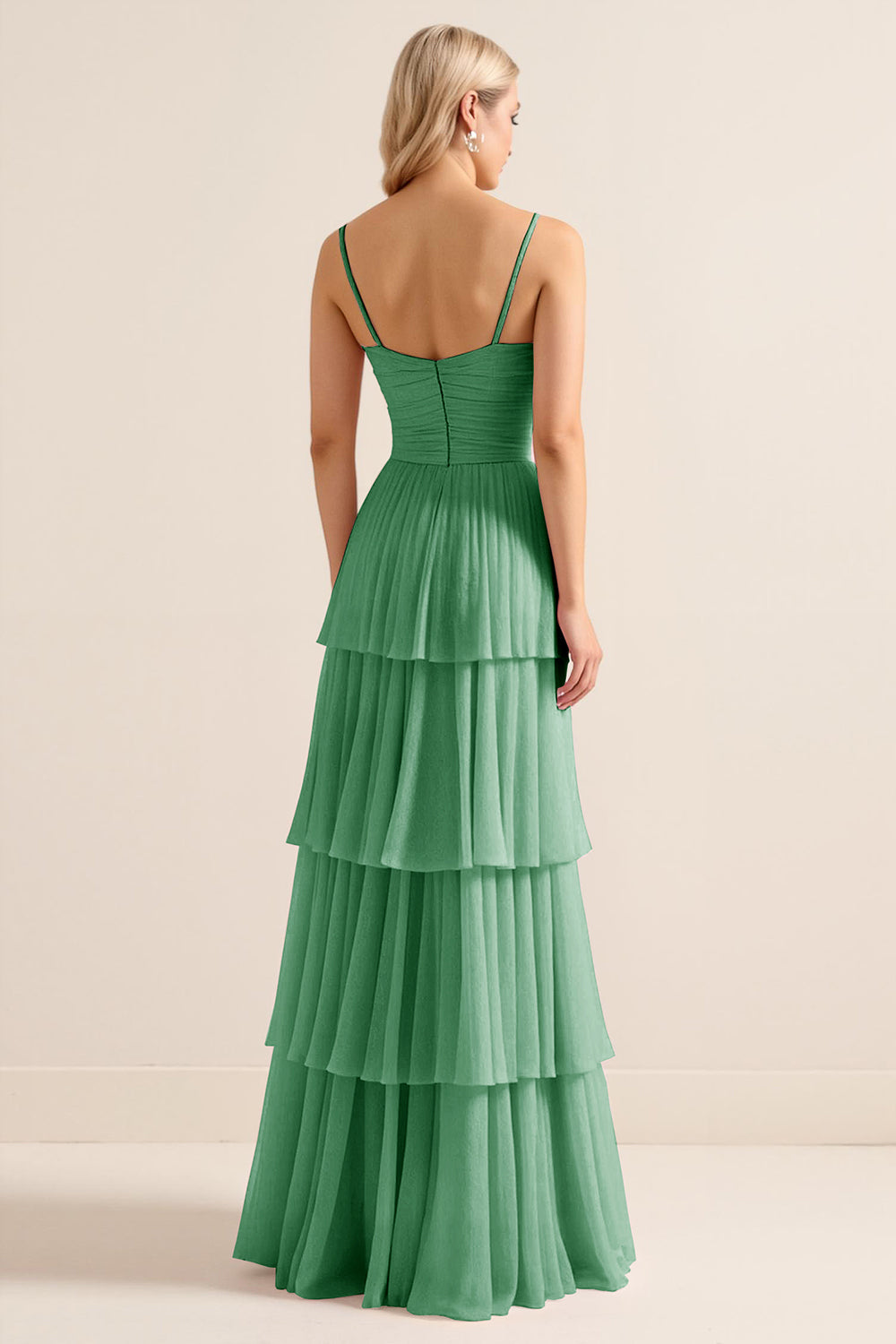 Lilac A-Line Spaghetti Straps Tiered Chiffon Long Bridesmaid Dress