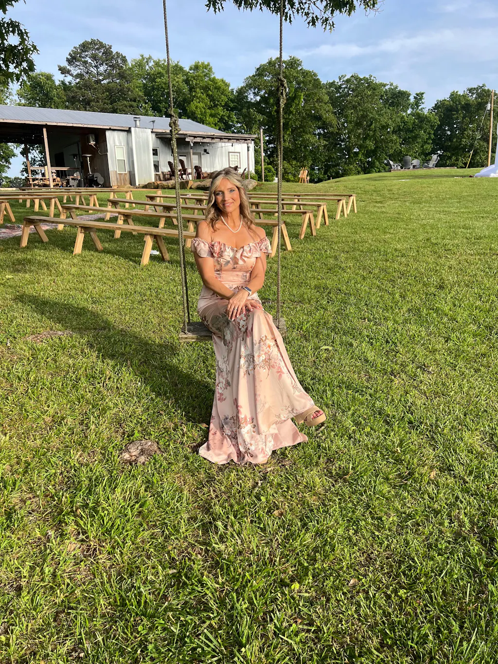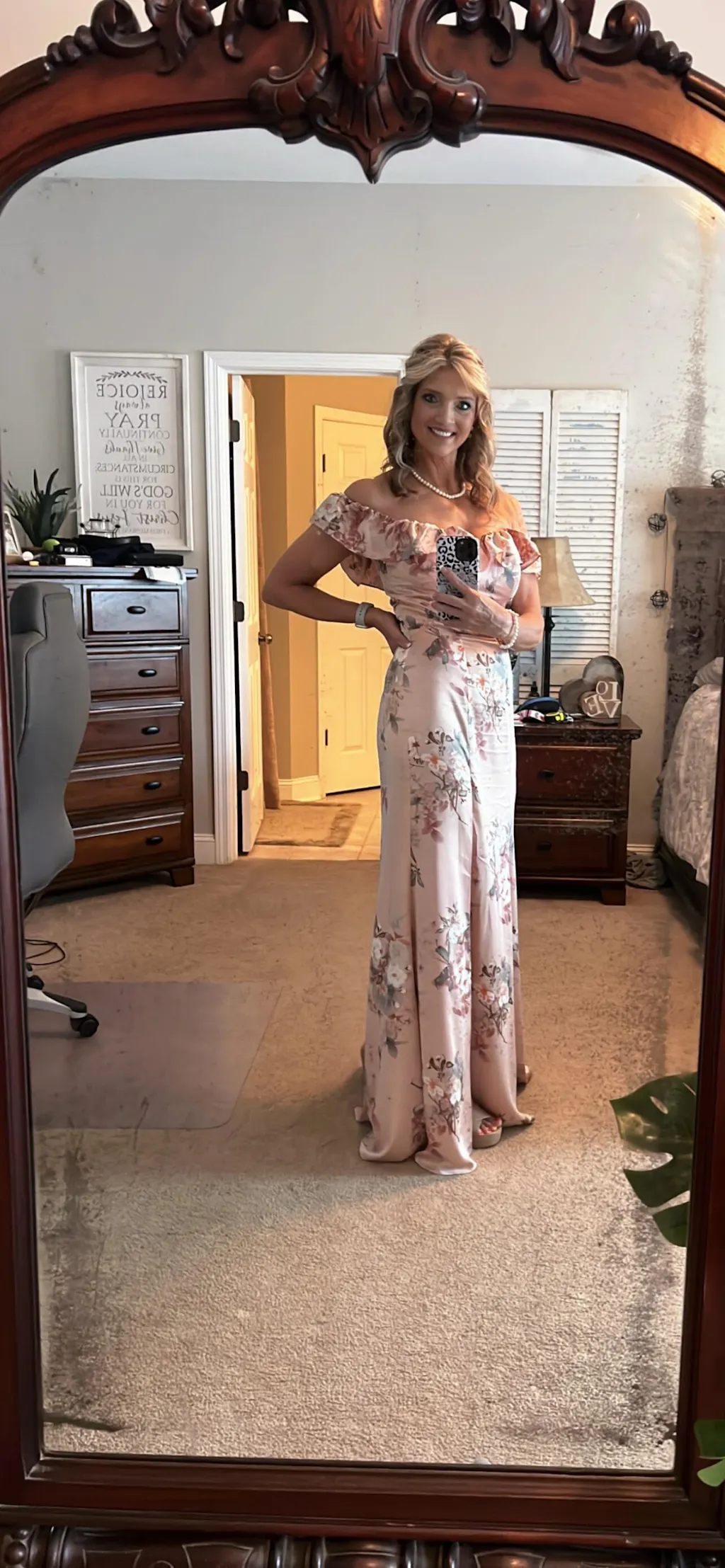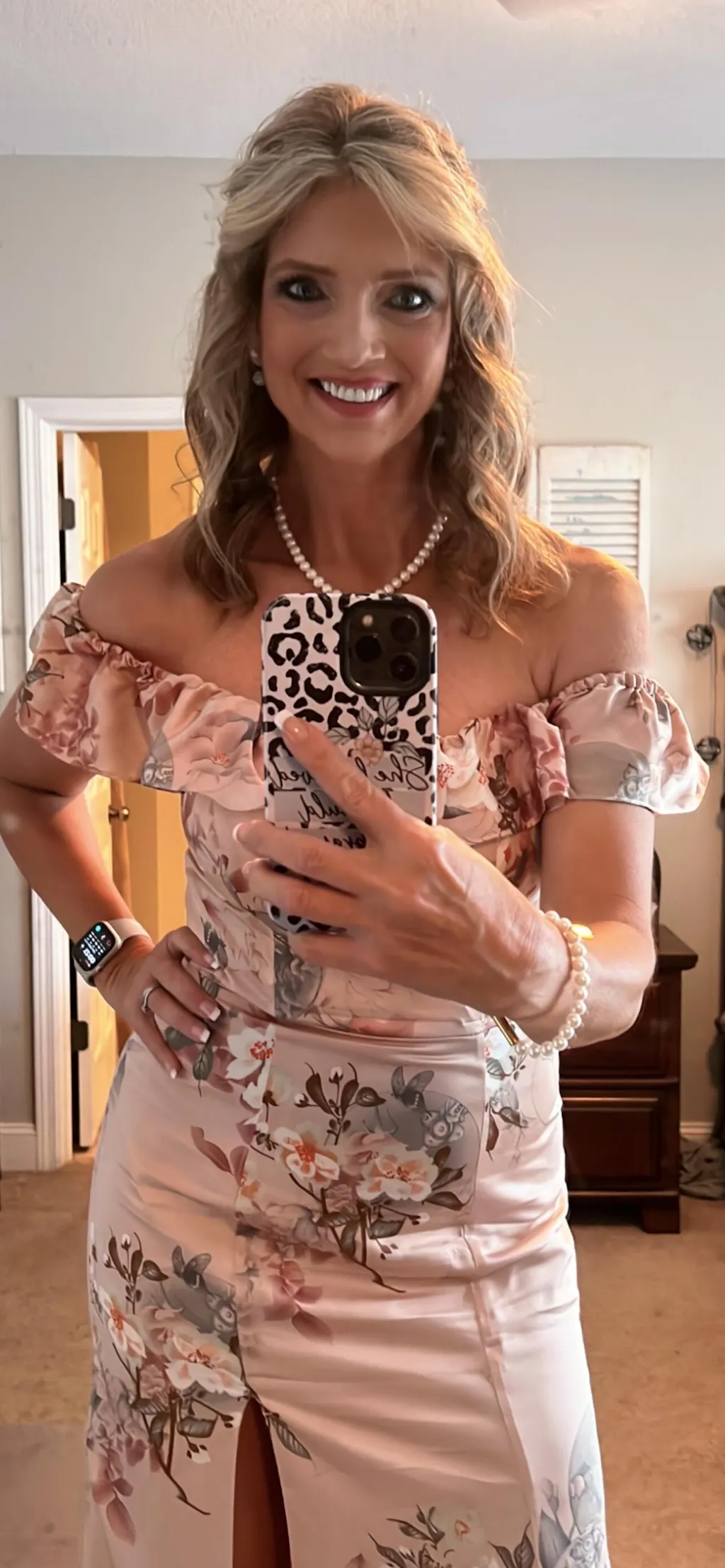 Blush Flower Mermaid Off The Shoulder Long Bridesmaid Dress with Slit