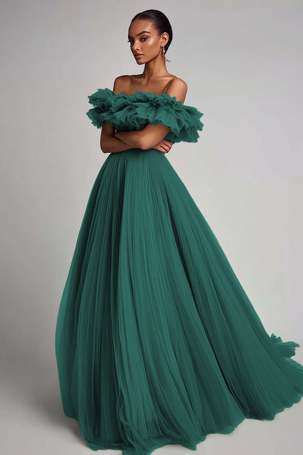 Black Off The Shoulder A Line Formal Dress With Ruffles