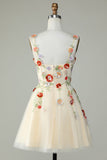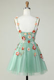 Black A Line Spaghetti Straps Sequin Homecoming Dress with Flowers
