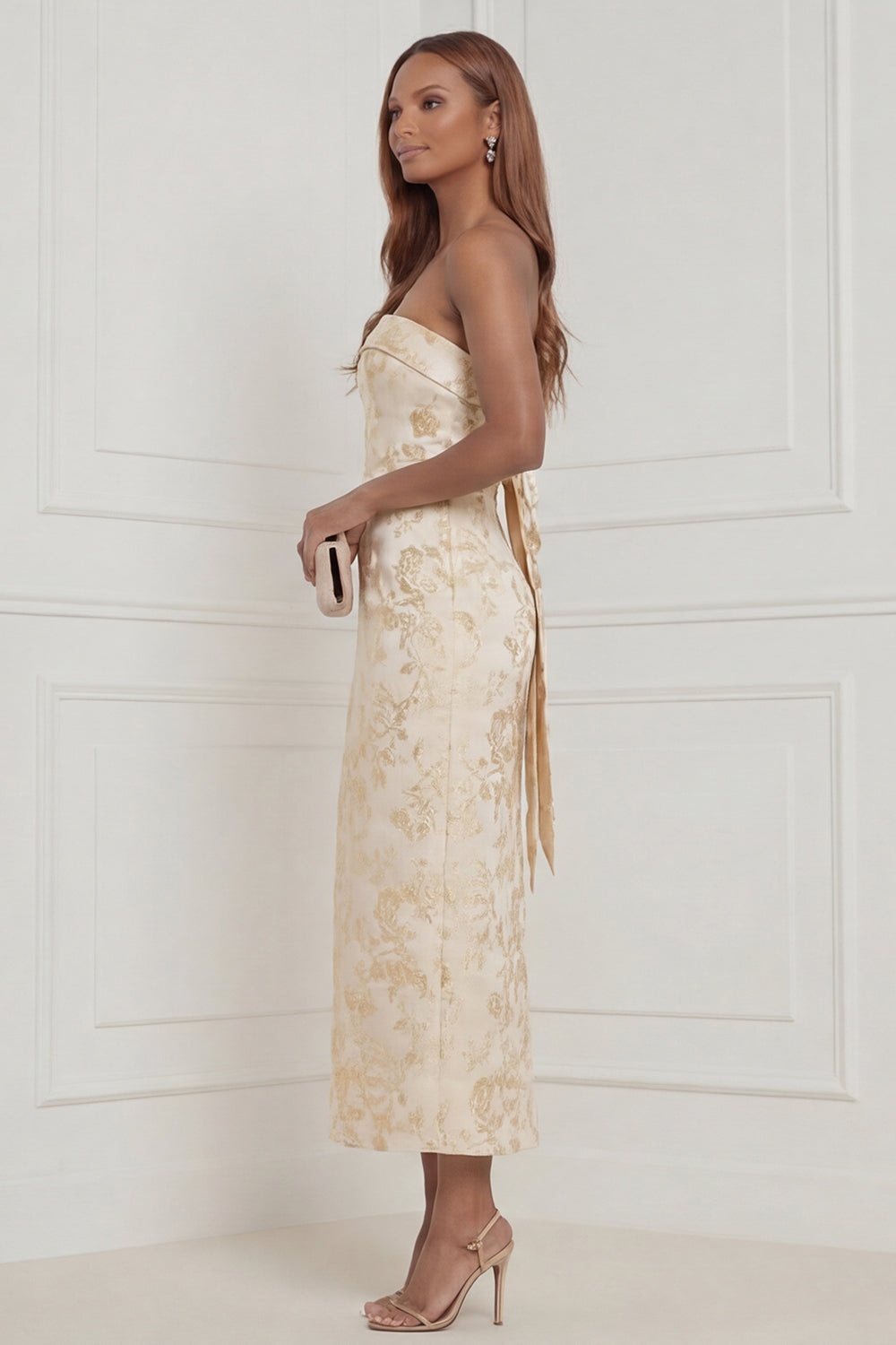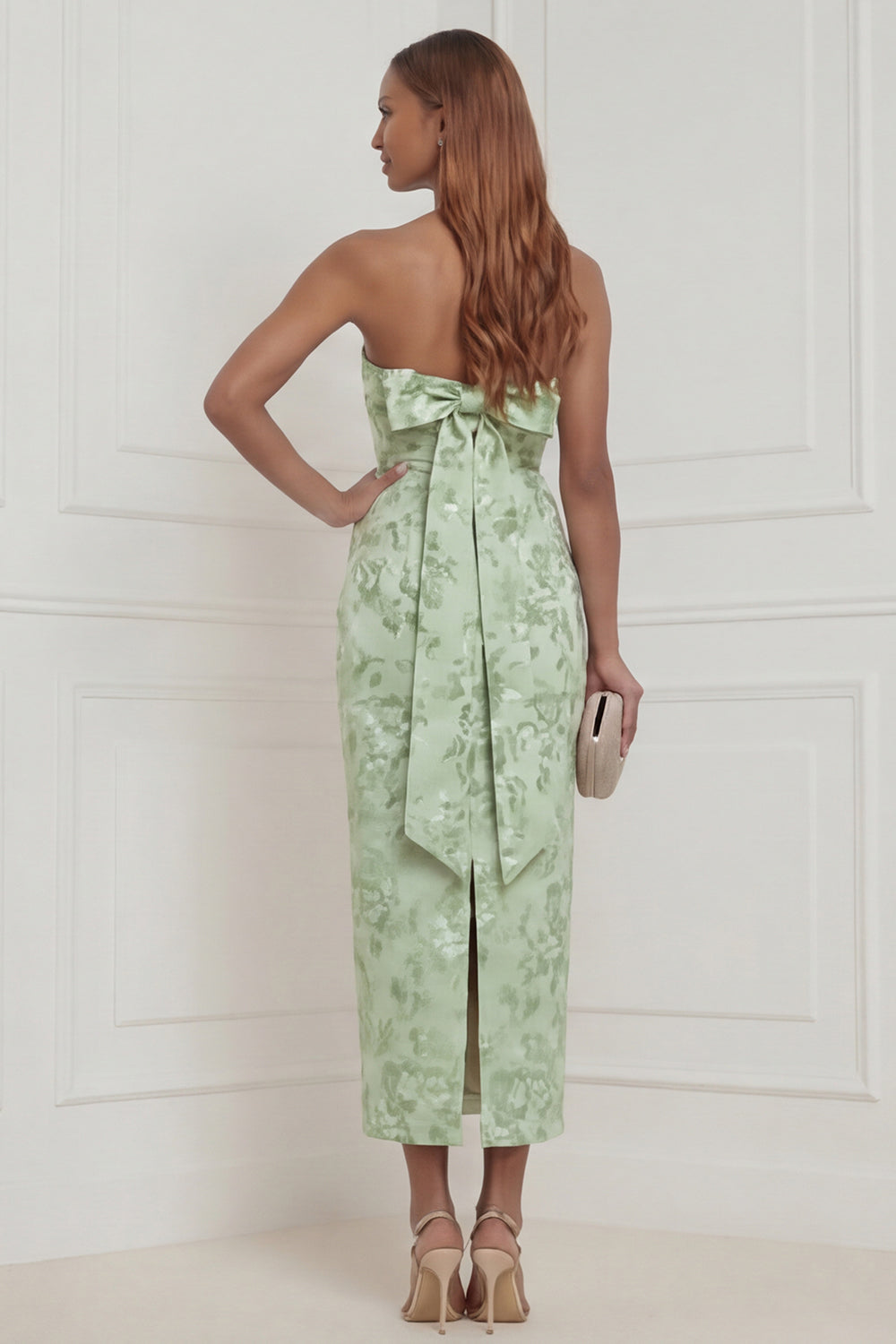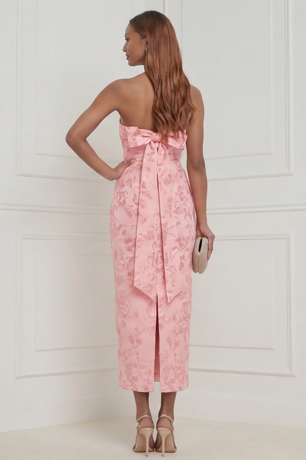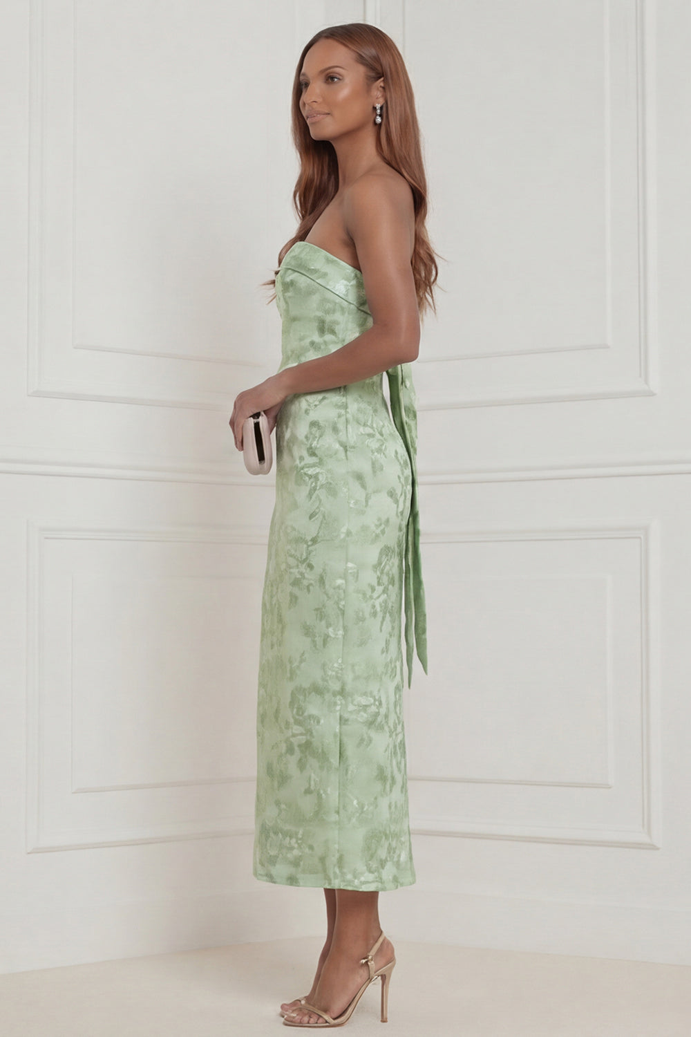 Sky Blue Sheath Strapless Jacquard Midi Wedding Guest Dress