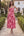 Hot Pink Floral A Line Strapless Corset Midi Wedding Guest Dress