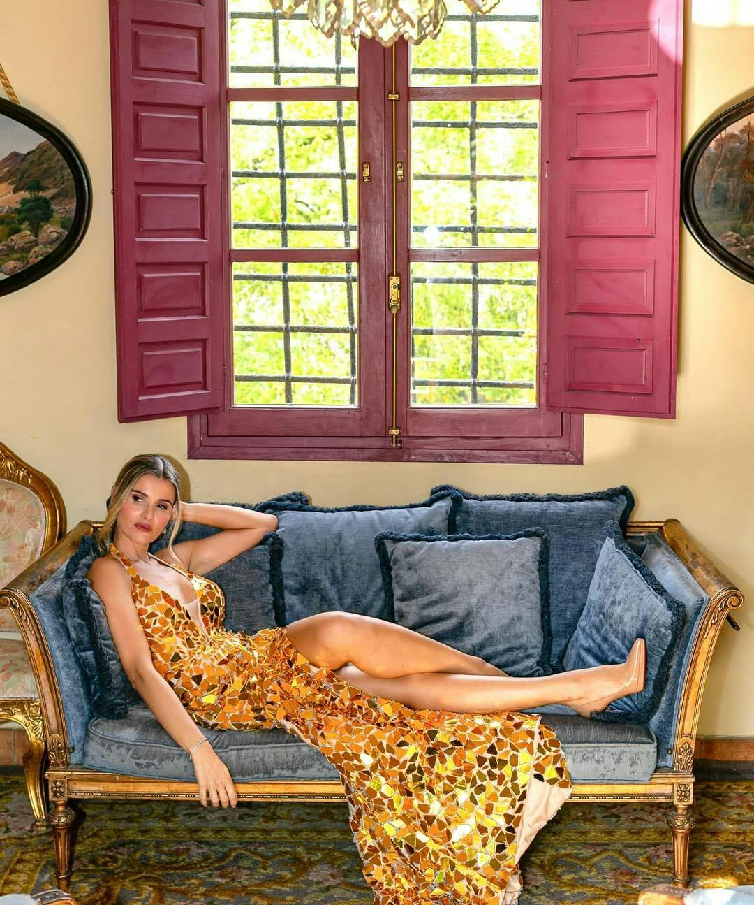 Golden Mermaid Halter Backless Mirror Prom Dress With High Slit