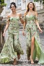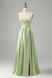 Olive A Line Spaghetti Straps Floor Length Dress with Slit