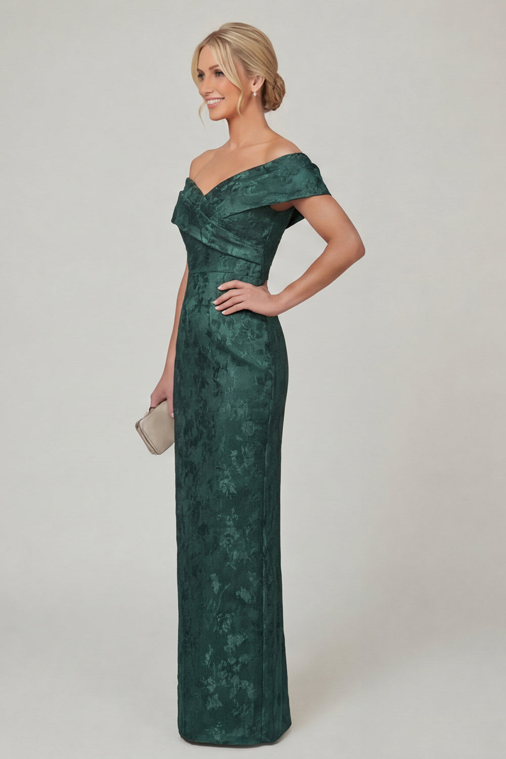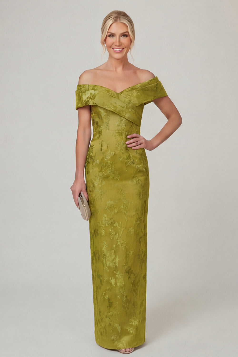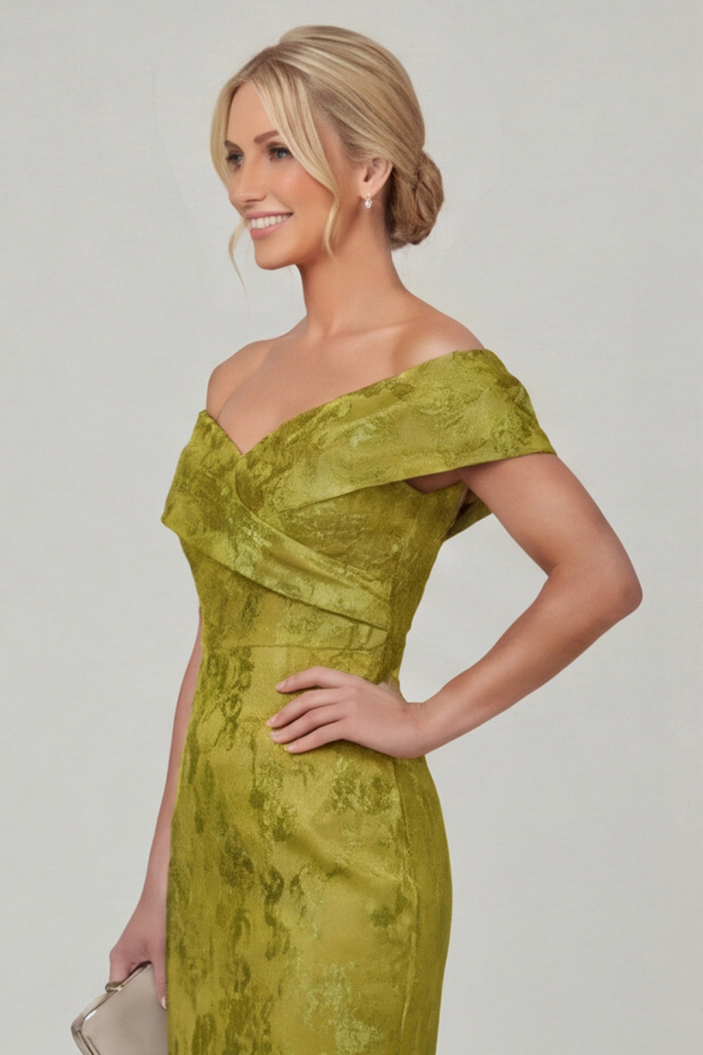 Olive Sheath Off the Shoulder Floral Long Mother of the Bride Dress with Slit