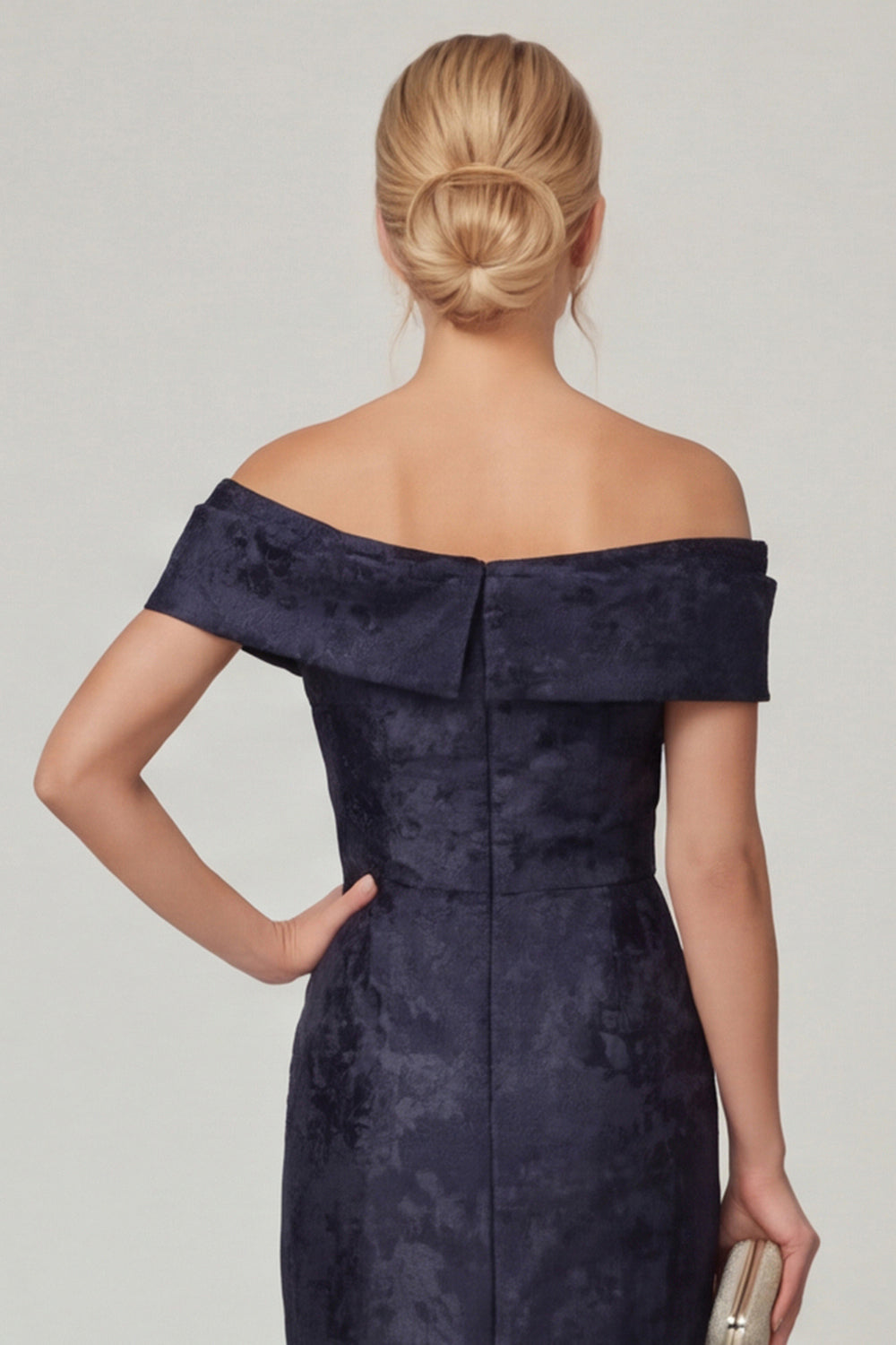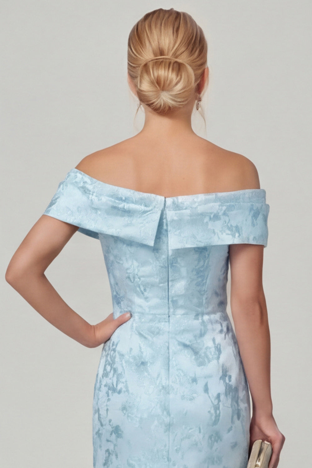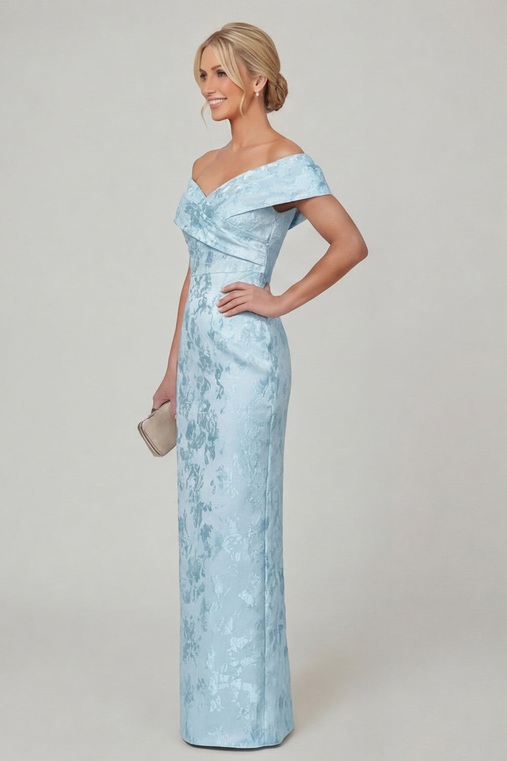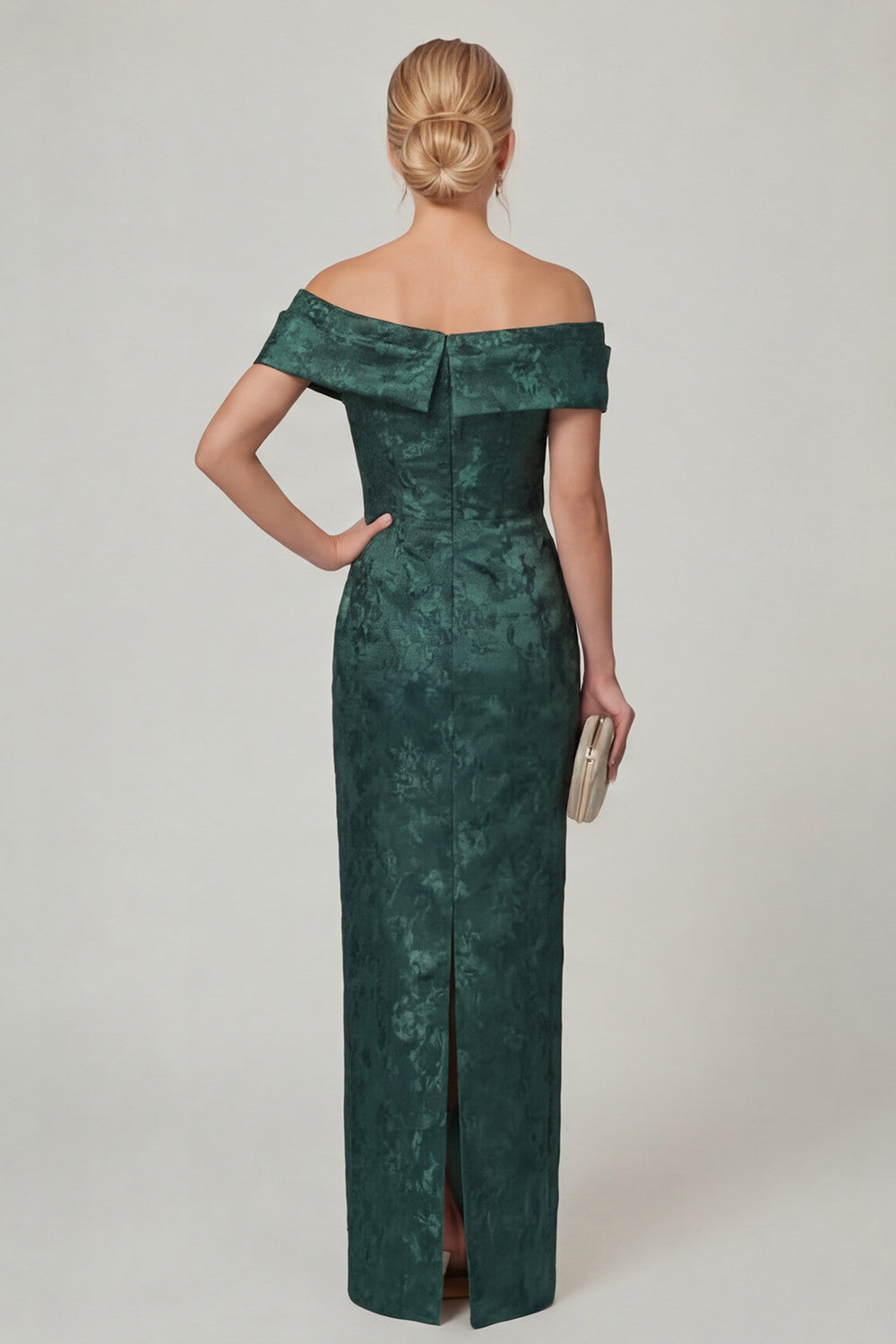 Olive Sheath Off the Shoulder Floral Long Mother of the Bride Dress with Slit