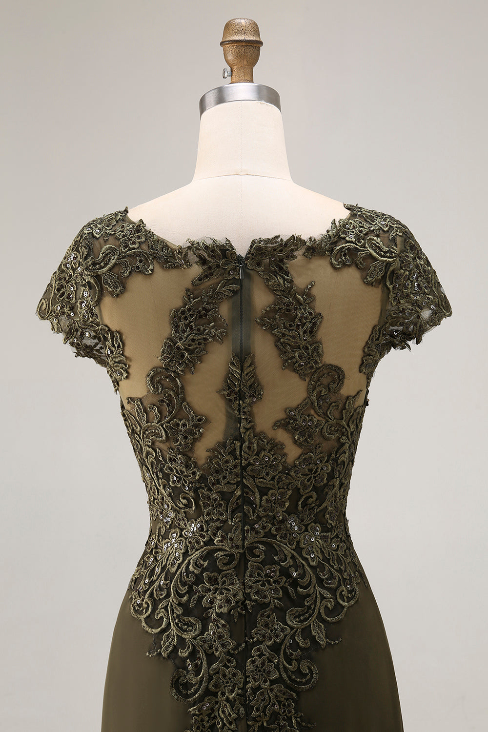 Olive V-Neck High Low Mother Of The Bride Dress with Appliques