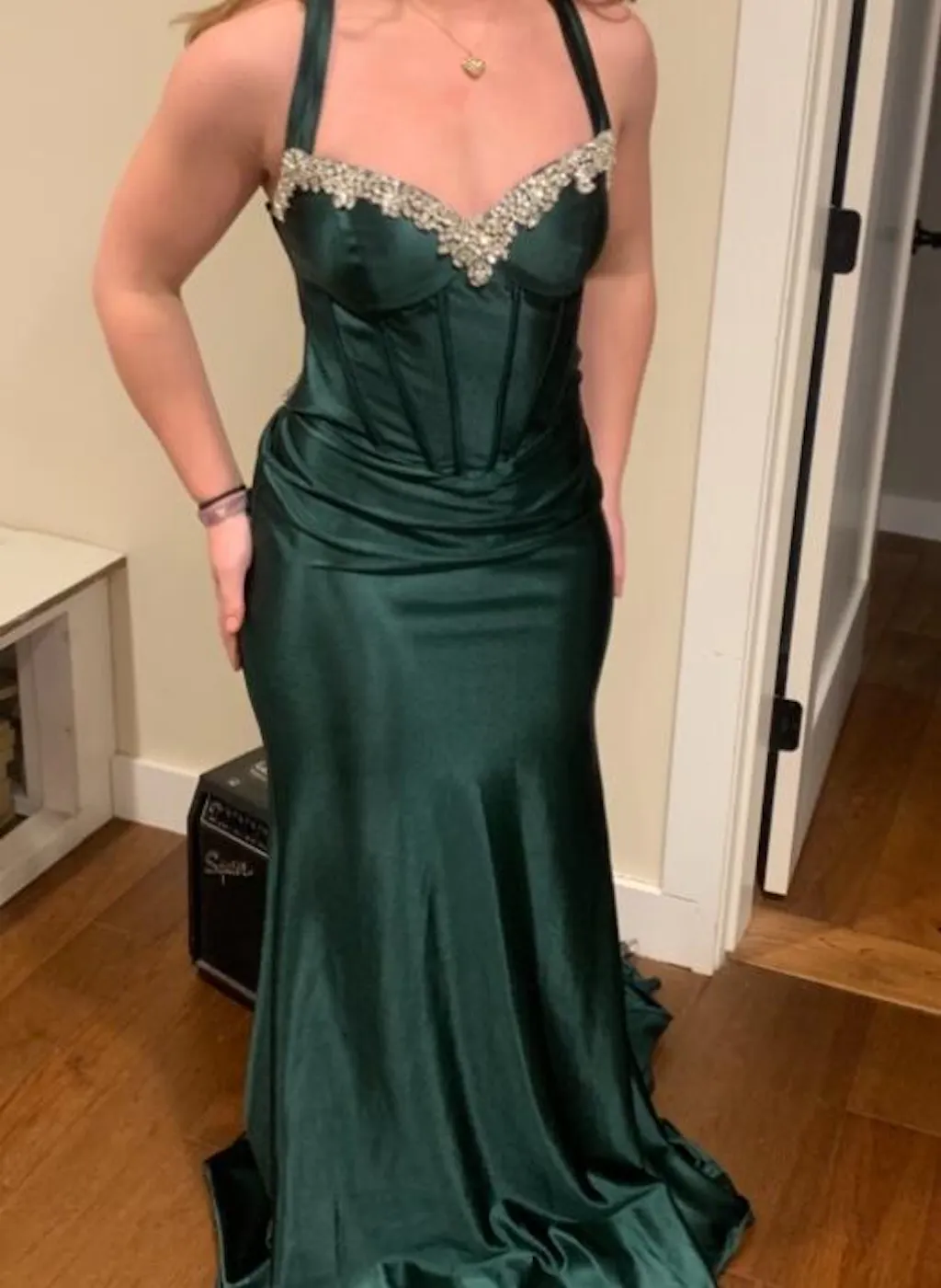 Gorgeous, well made, beautiful dress. Back straps need to be adjusted, but very pleased with the dress. My daughter is 5’6, athletic build, ordered a 12 based off measurements. It’s a tad loose, but that’s easier fix than too small. Soft, slightly stretchy fabric and looks just like the photo.