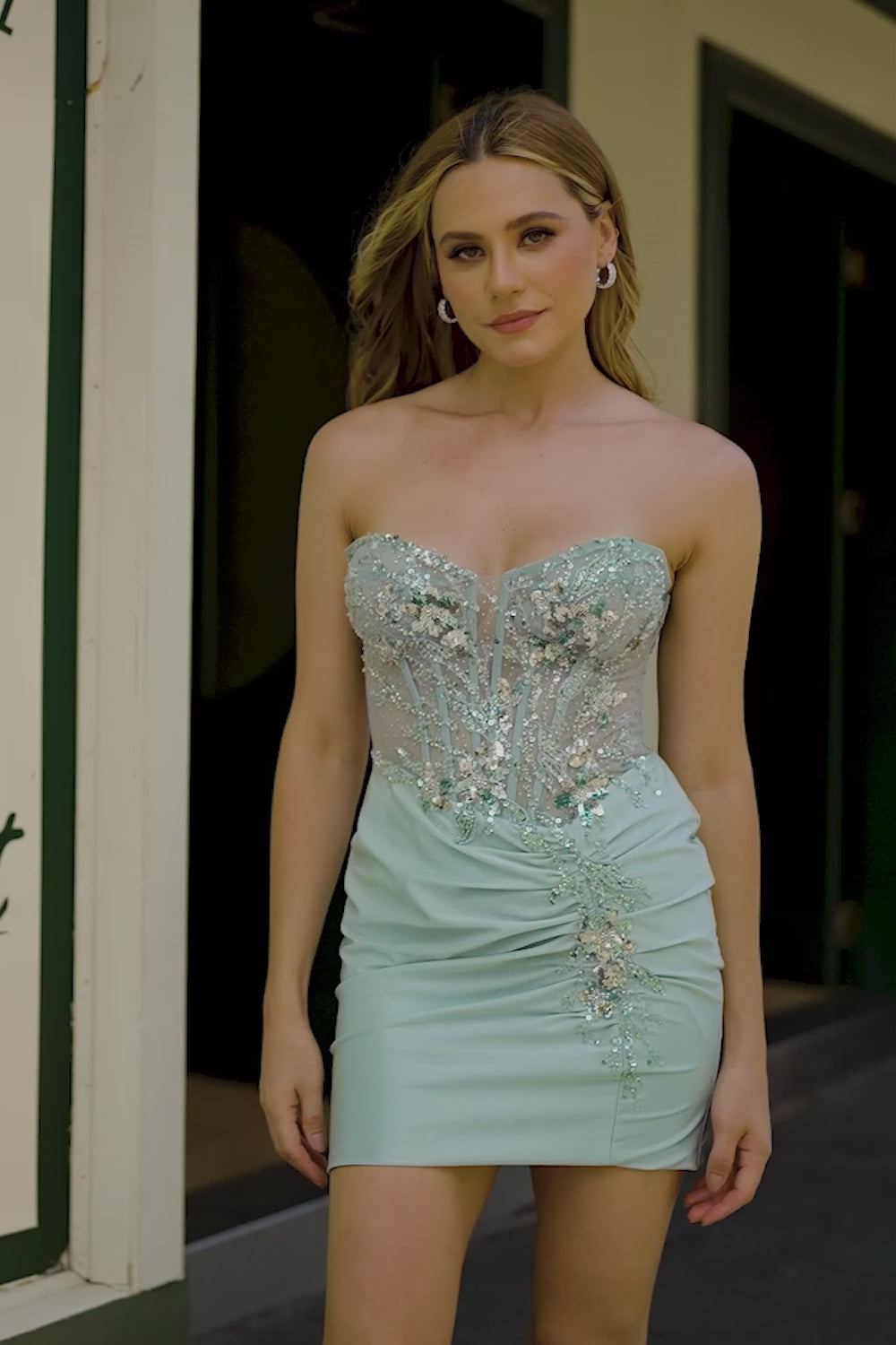 Sparkly Grey Green Bodycon Ruhced Strapless Homecoming Dress with Sequins
