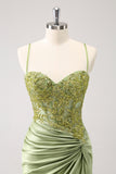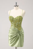 Stylish Army Green Tight Lace Up Back Corset Sequin Homecoming Dress with Appliques
