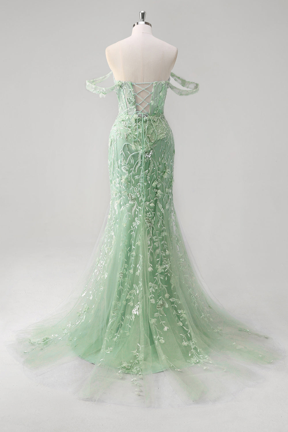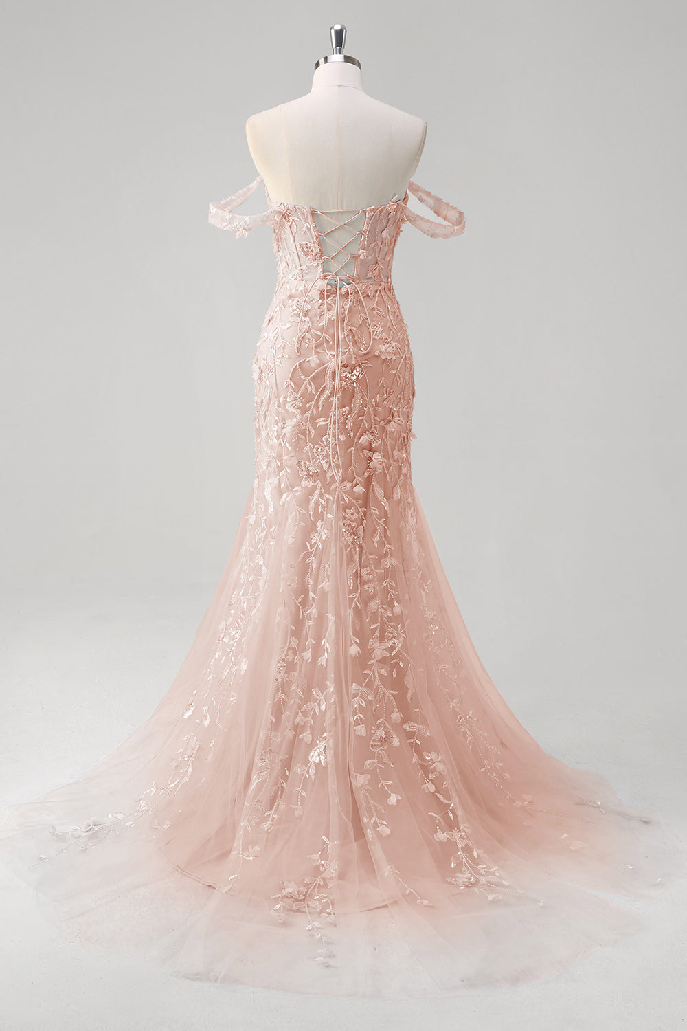 Mermaid Applique Off the Shoulder Corset Blue Prom Dress