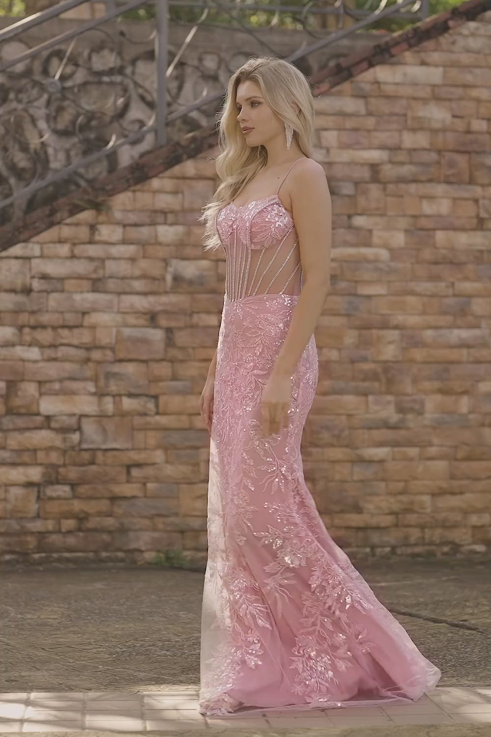 Sparkly Blush Beaded Mermaid Long Prom Dress with Sequins