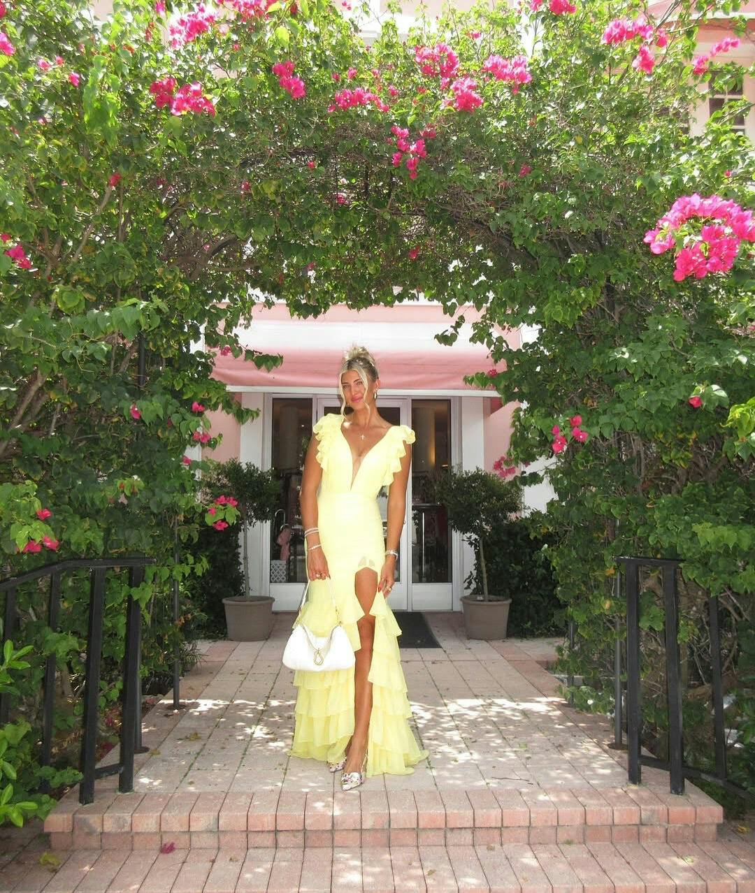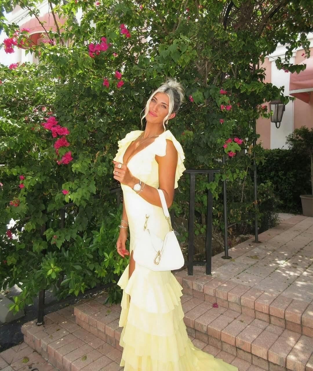 Daffodil Mermaid V Neck Ruffled Formal Dress With Slit