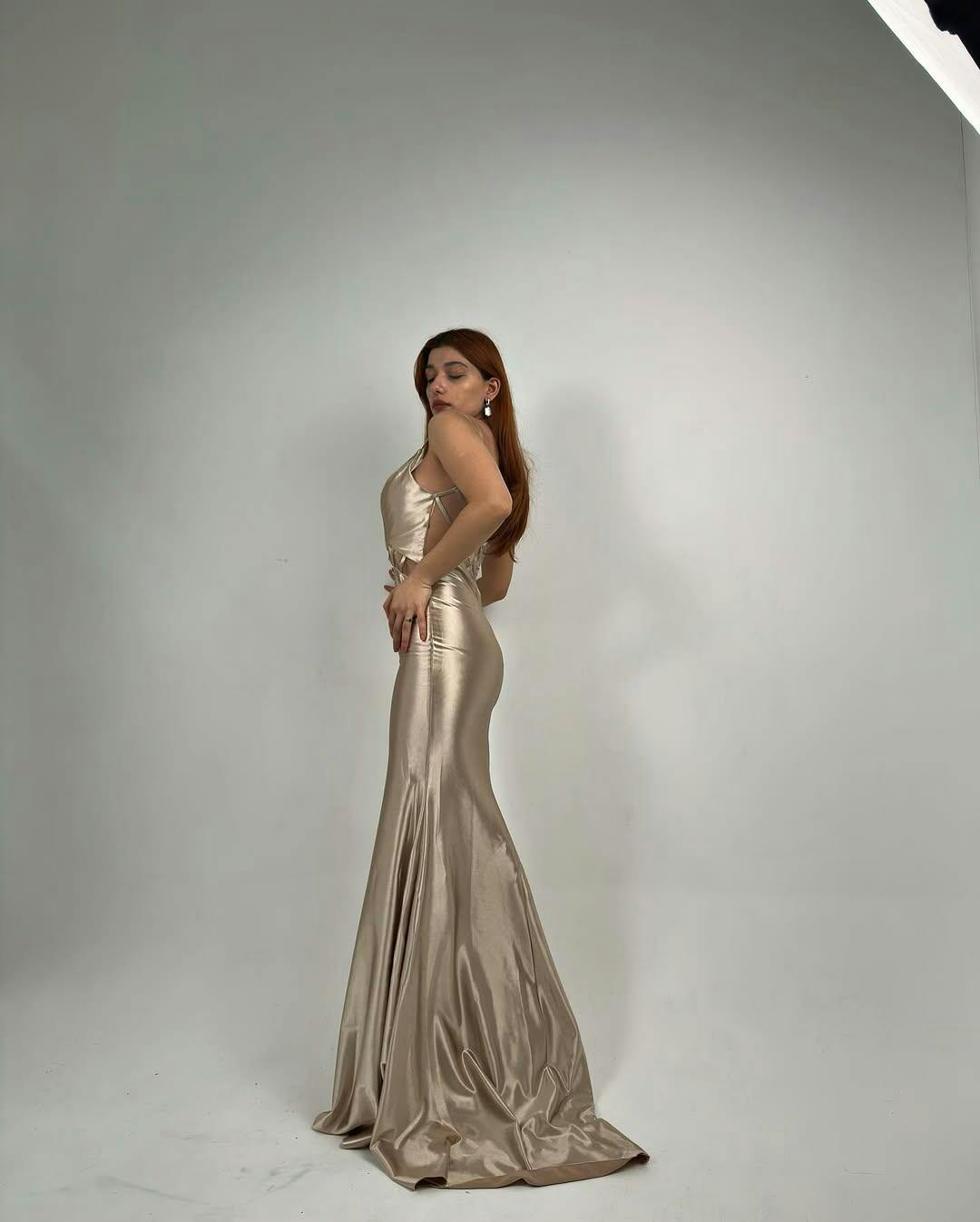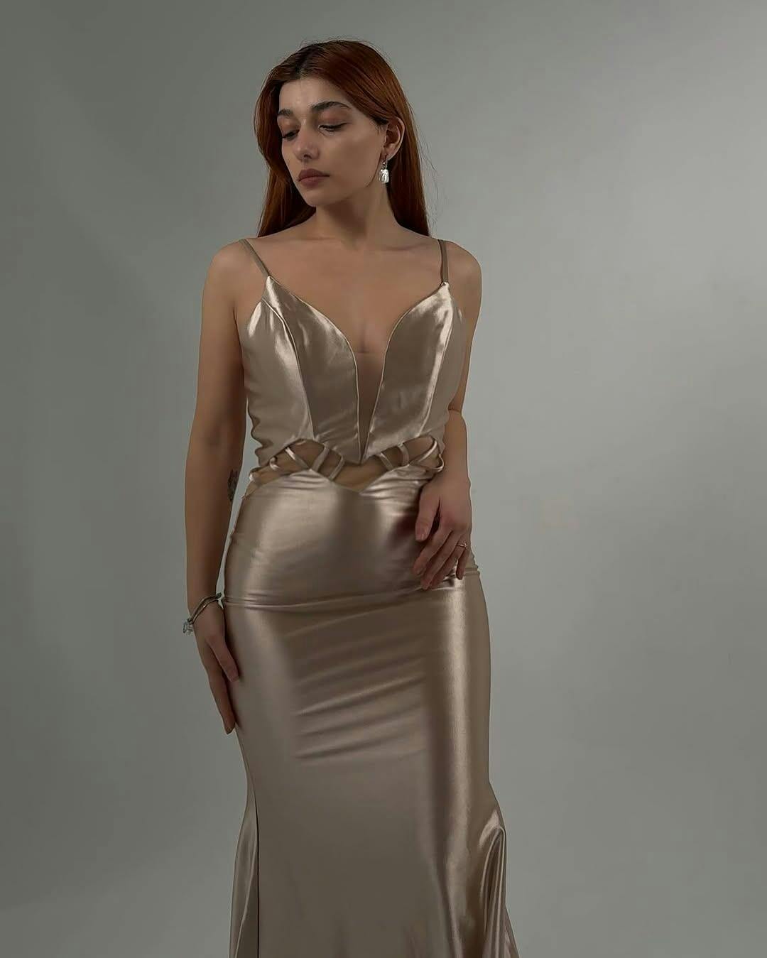 Champagne Mermaid Spaghetti Straps Backless Long Prom Dress