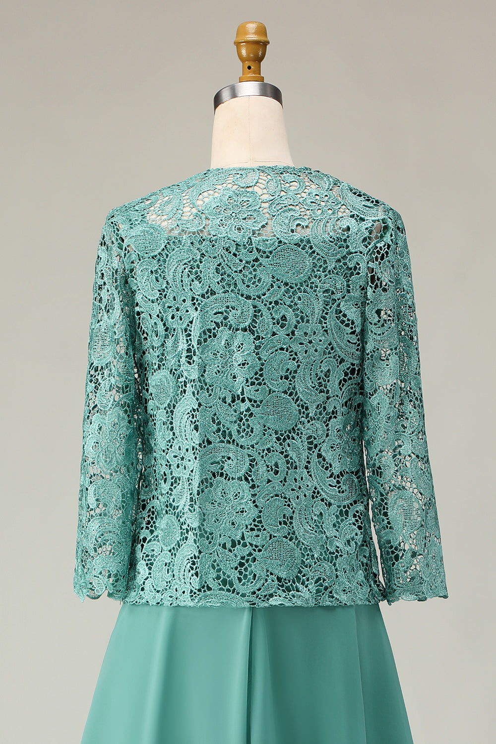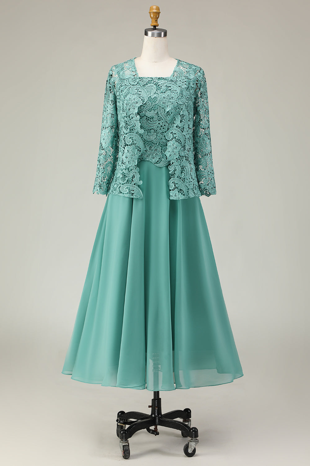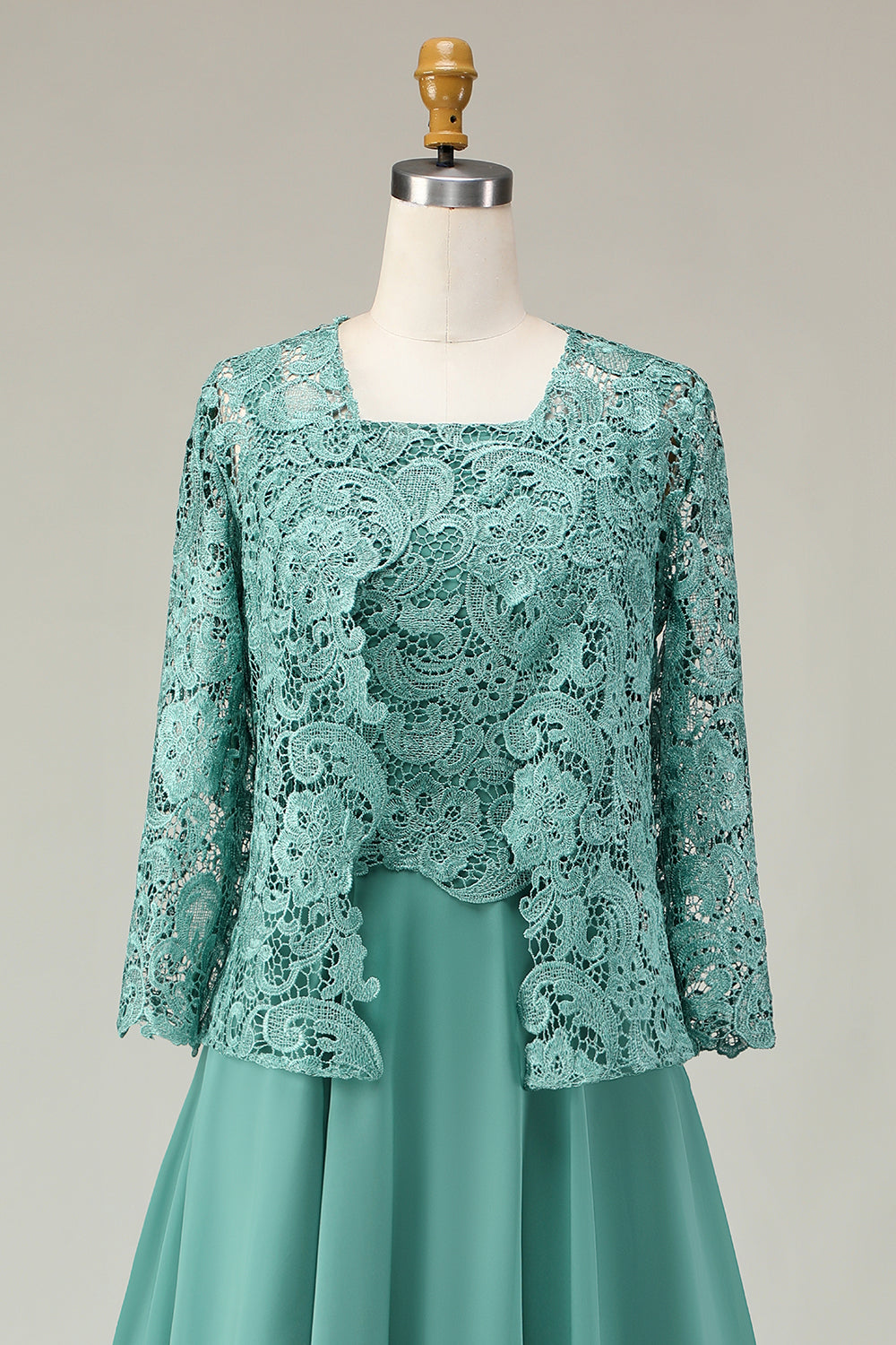 2-Piece A Line Eucalyptus Lace Midi Mother of the Bride Dress