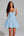 Beaded A Line Spaghetti Straps Brocade Mini Blue Homecoming Dress with Pearls