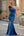 Blue Bodycon Fringed Floor Length Formal Dress with Long Sleeves