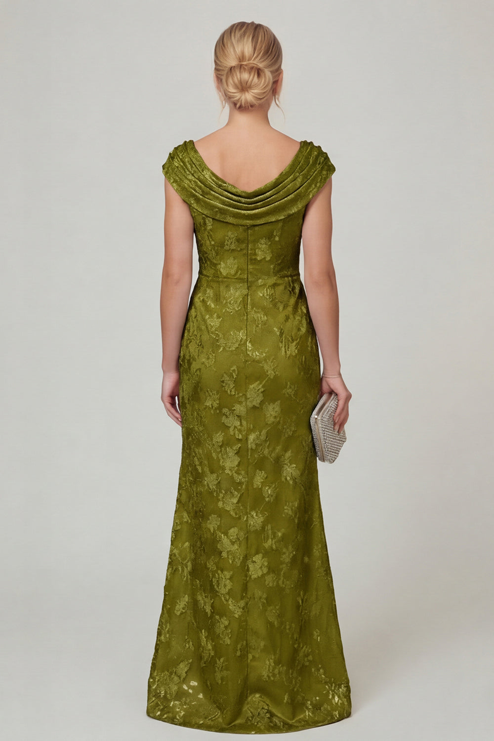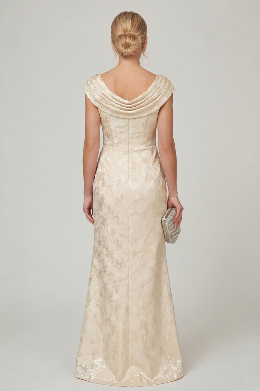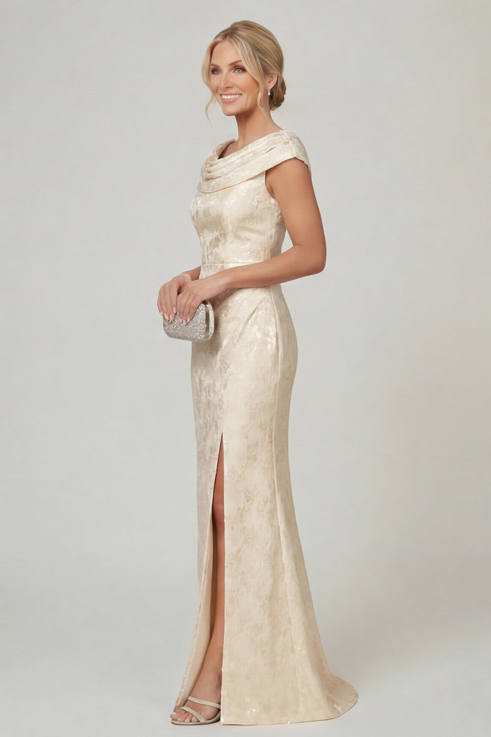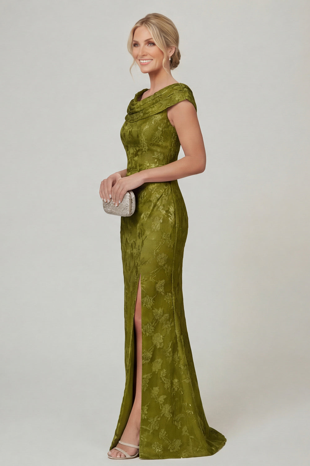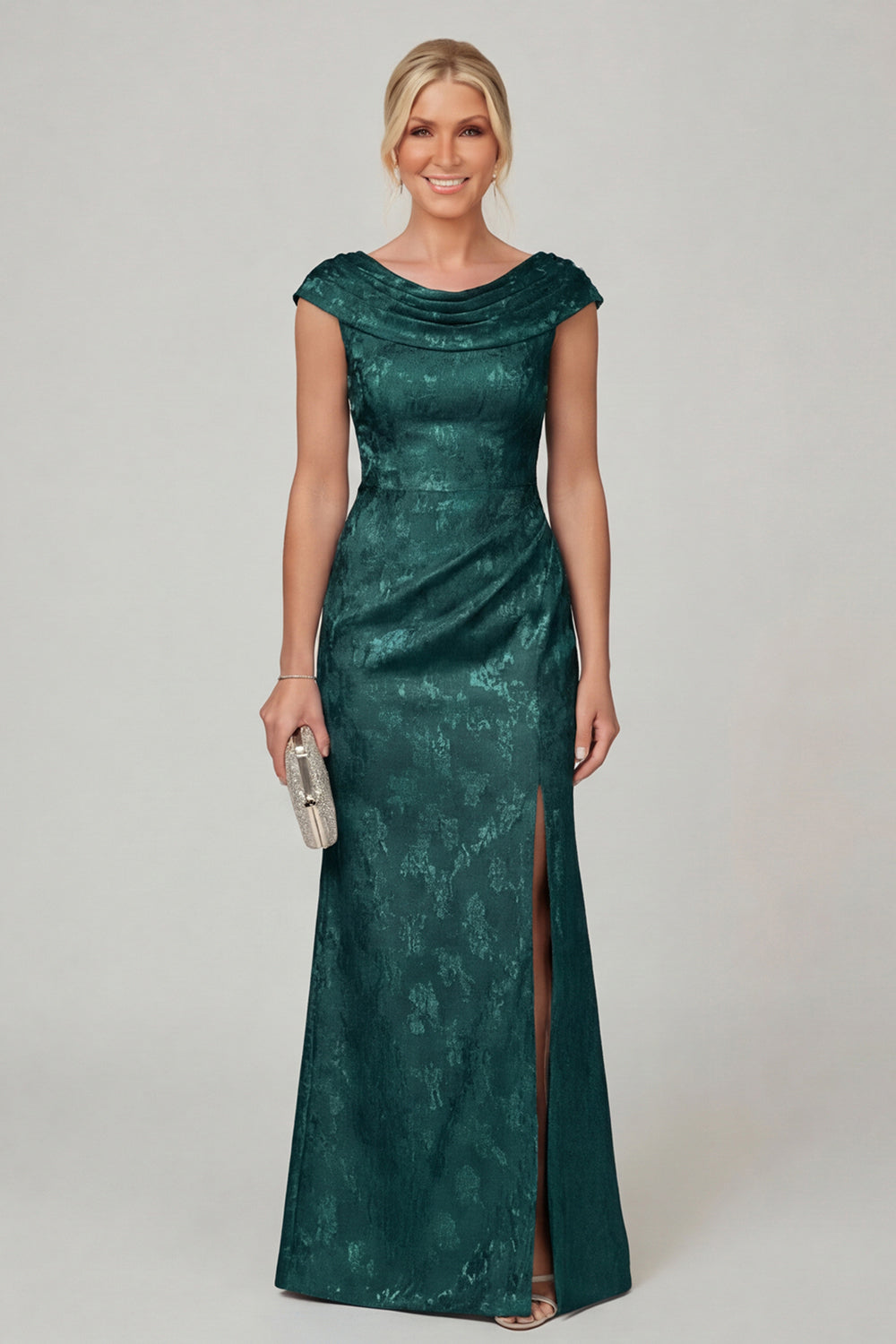 Navy Cowl Neck Floral Mermaid Long Mother of the Bride Dress with slit