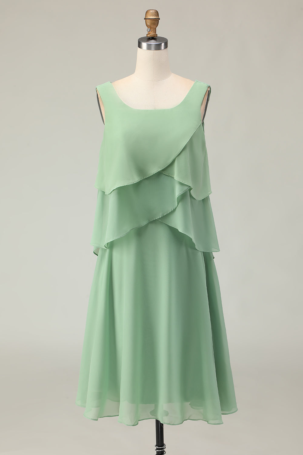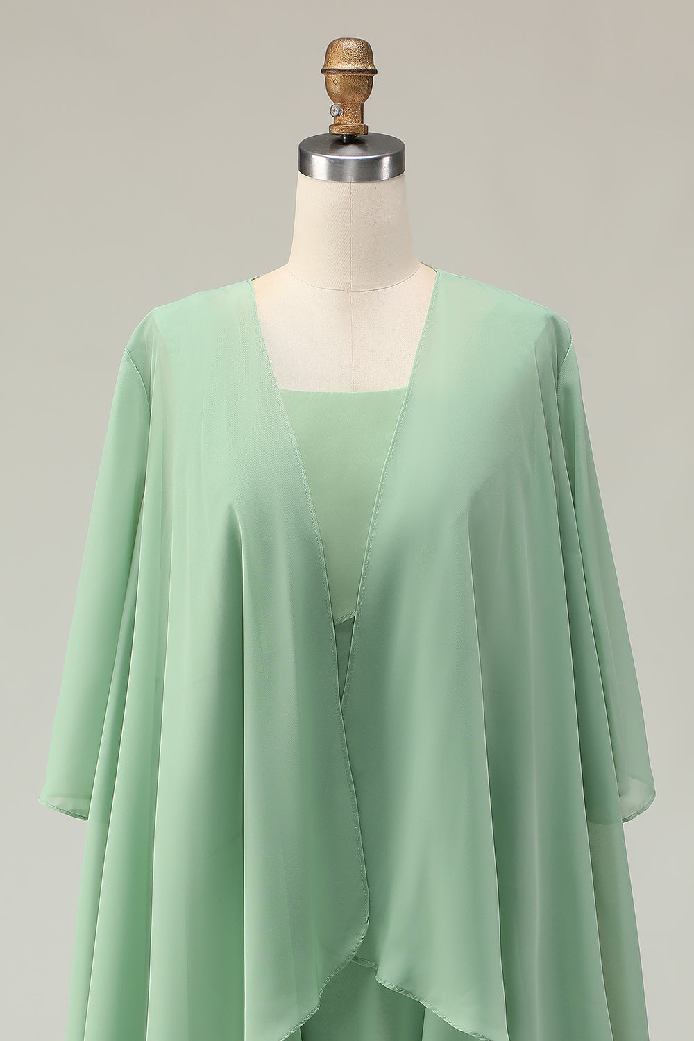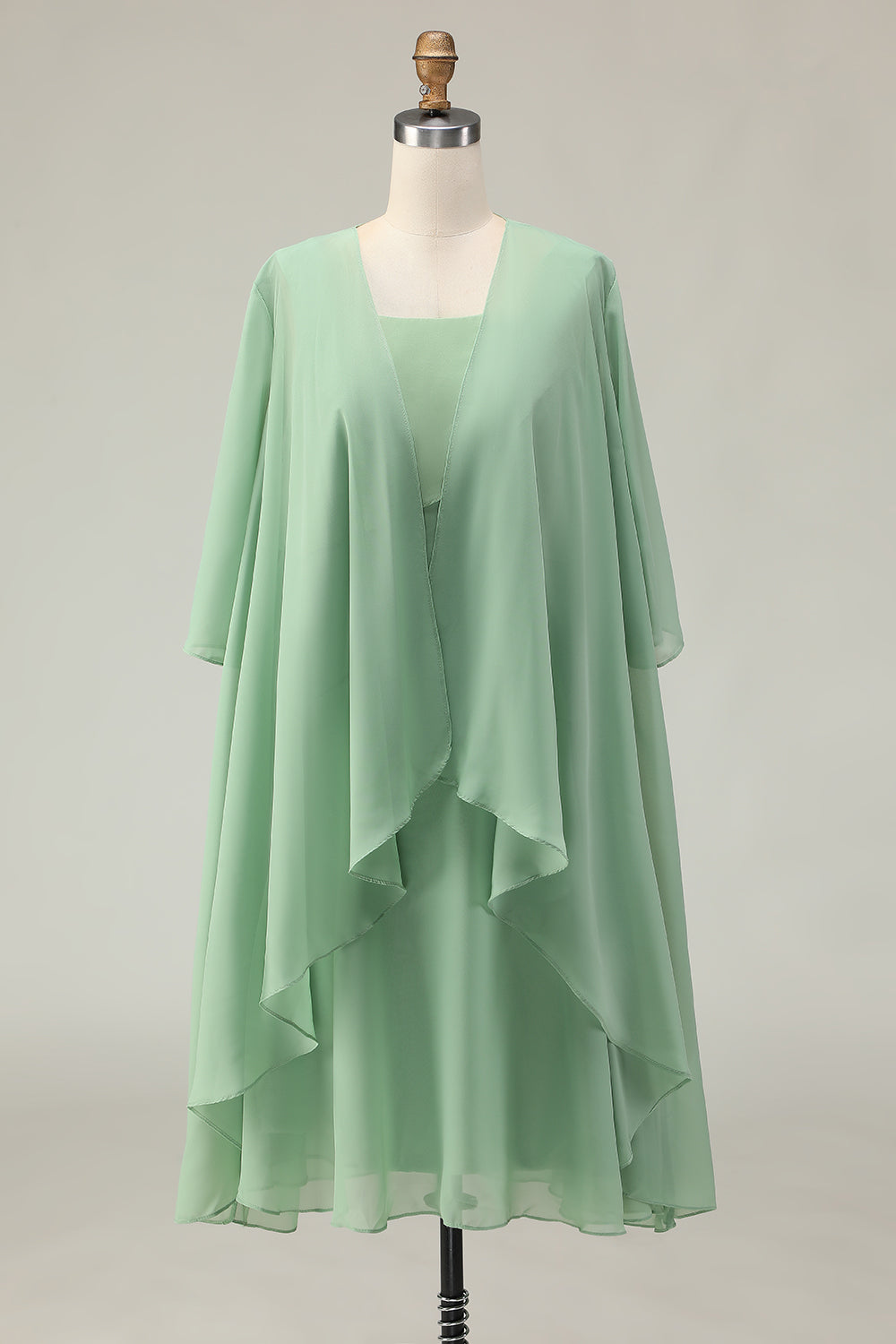 2-Piece Dusty Sage A Line Ruffled Chiffon Mother of the Bride Dress