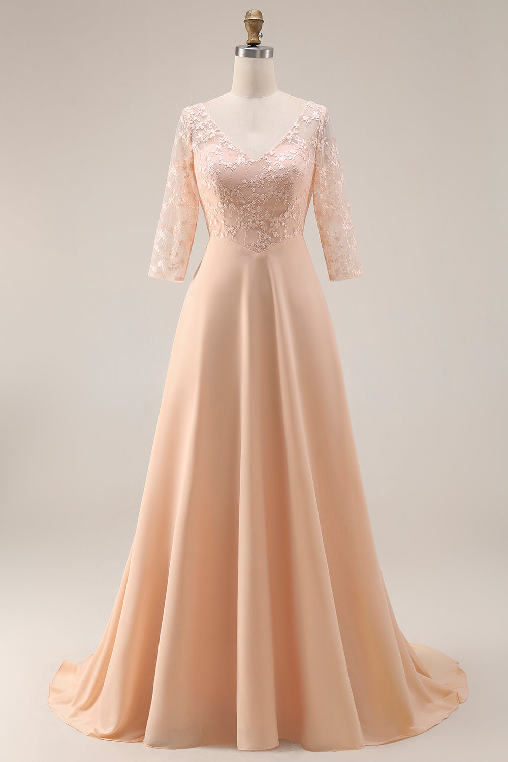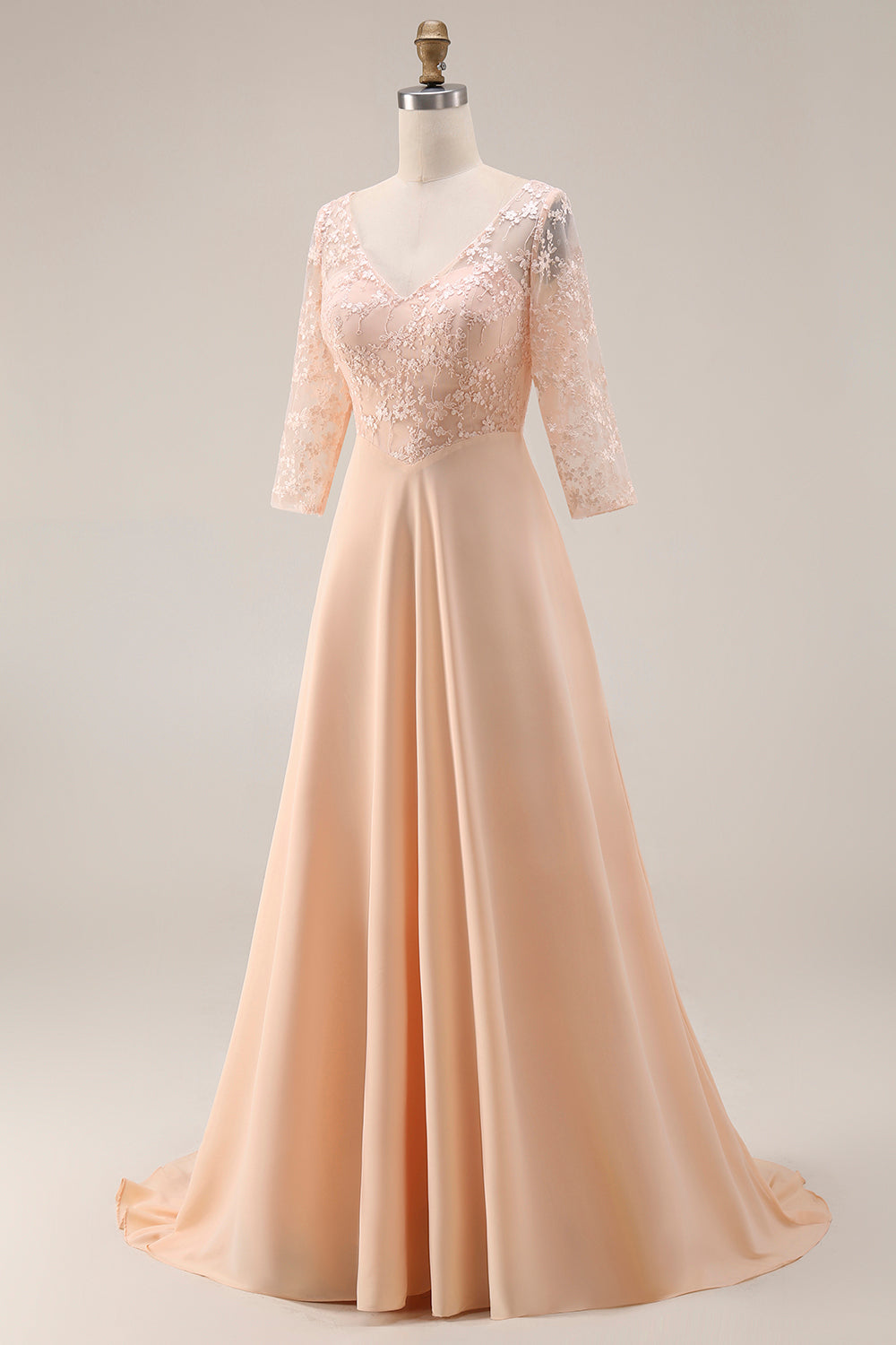 Apricot A Line Applique Mother Of The Bride Dress With Half Sleeves