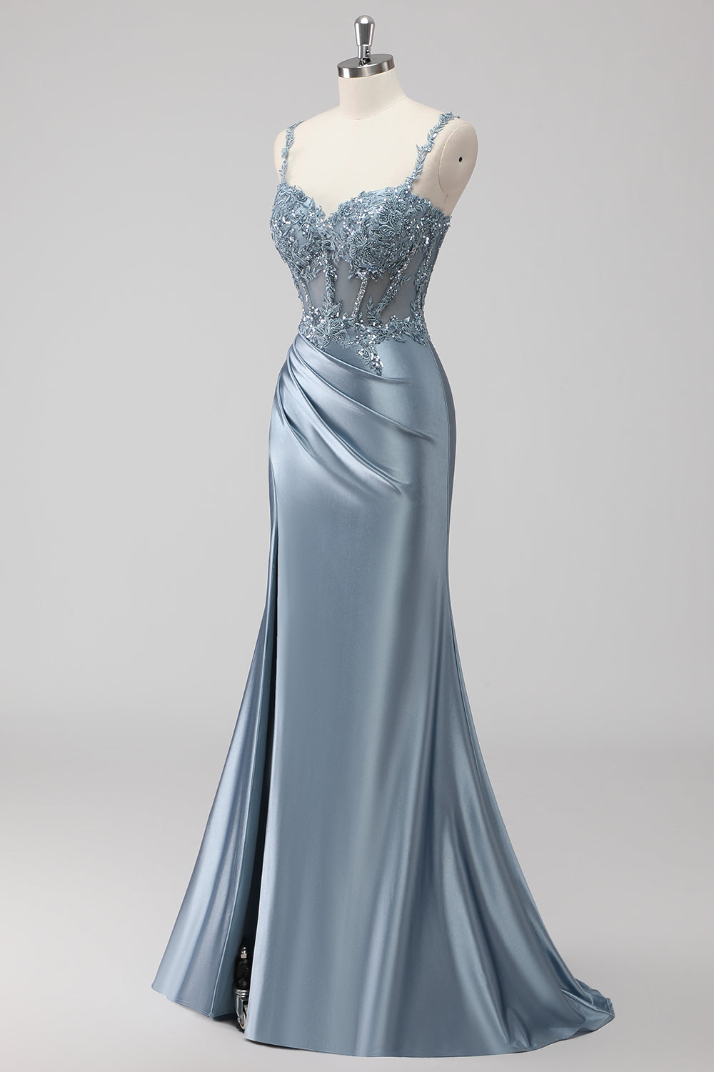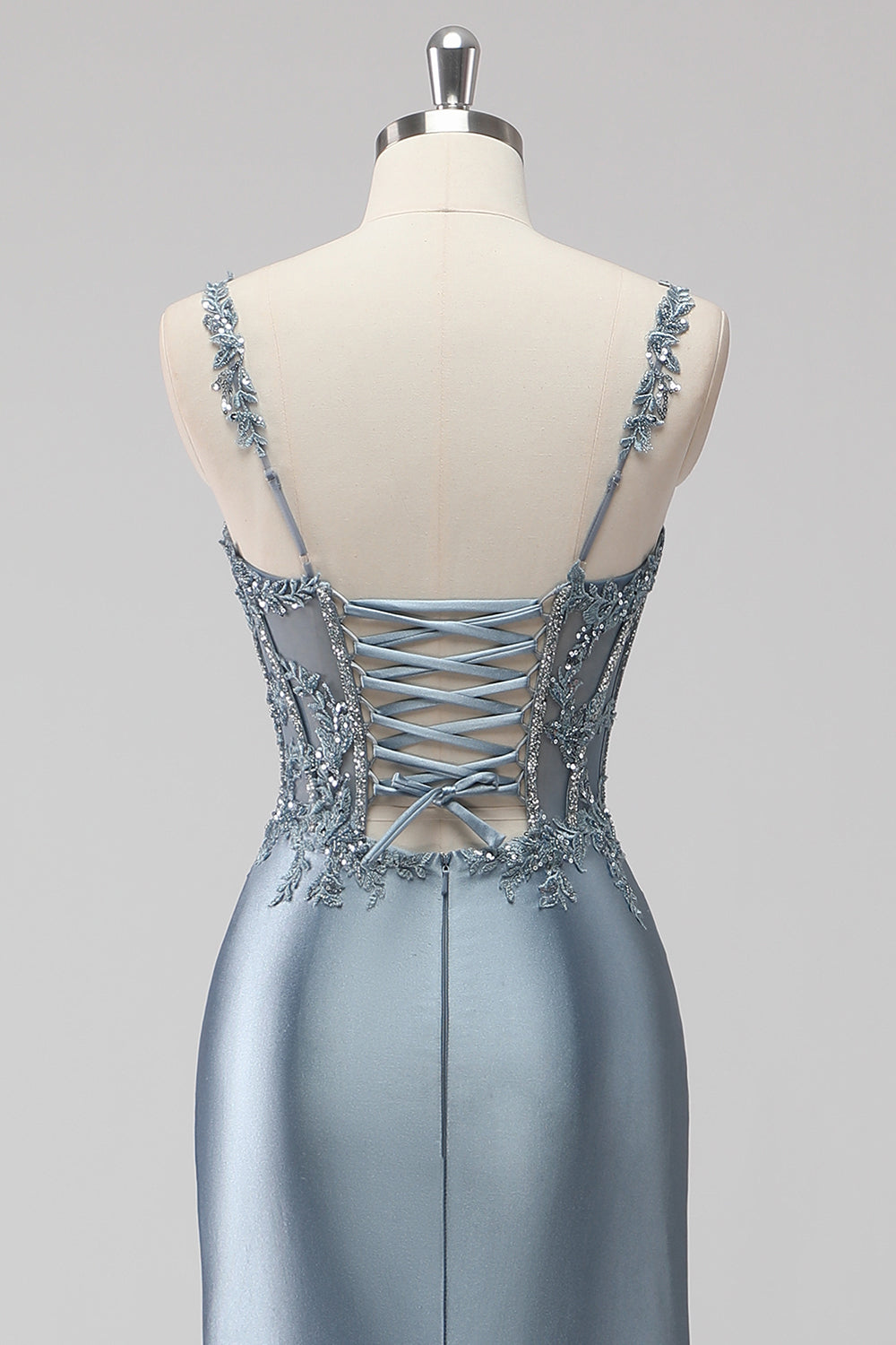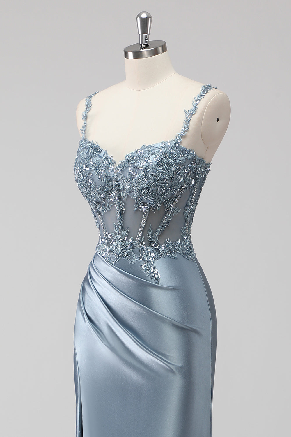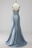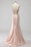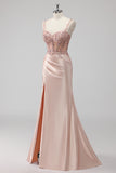 Blush Spaghetti Straps Sequins Corset Mermaid Prom Dress