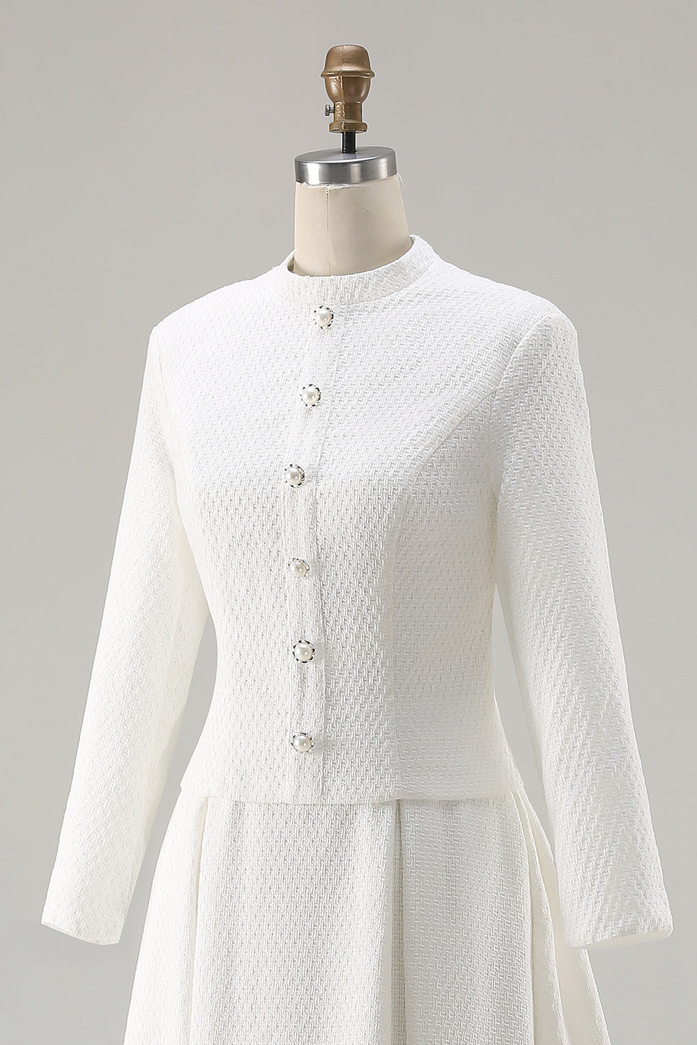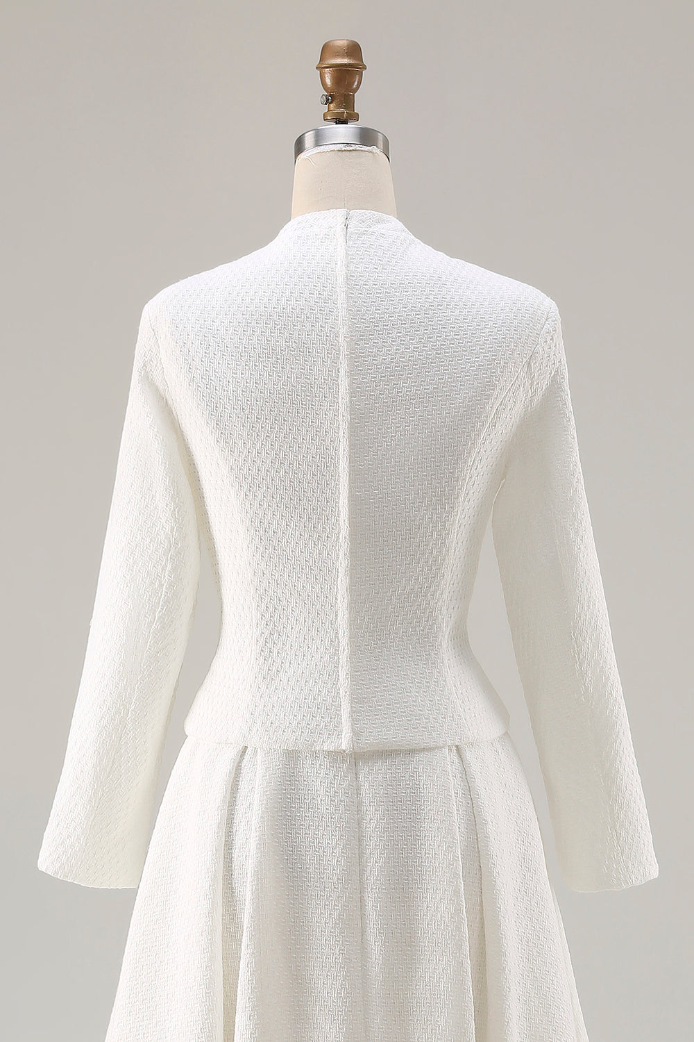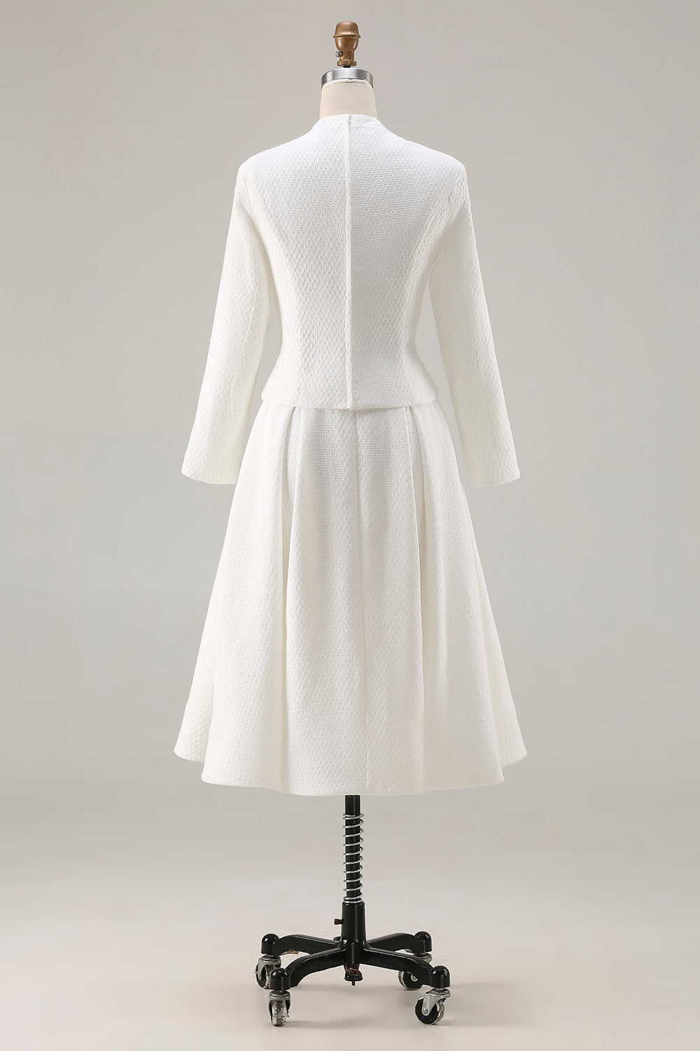 Ivory A Line Long Sleeves Round Neck Midi Work Dress