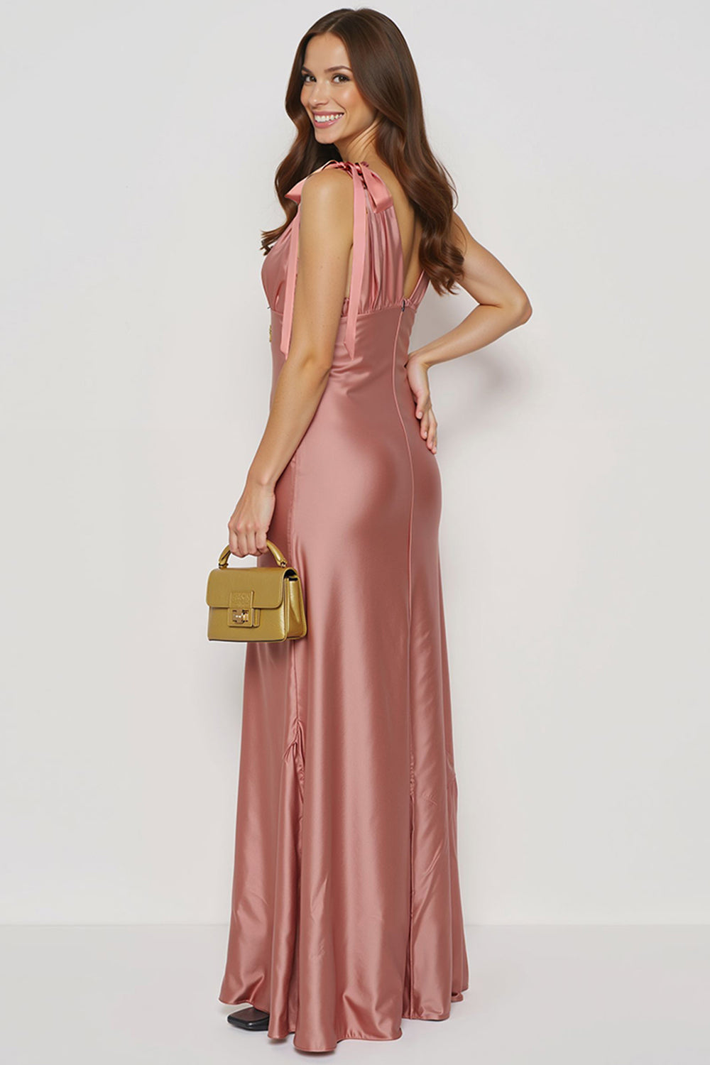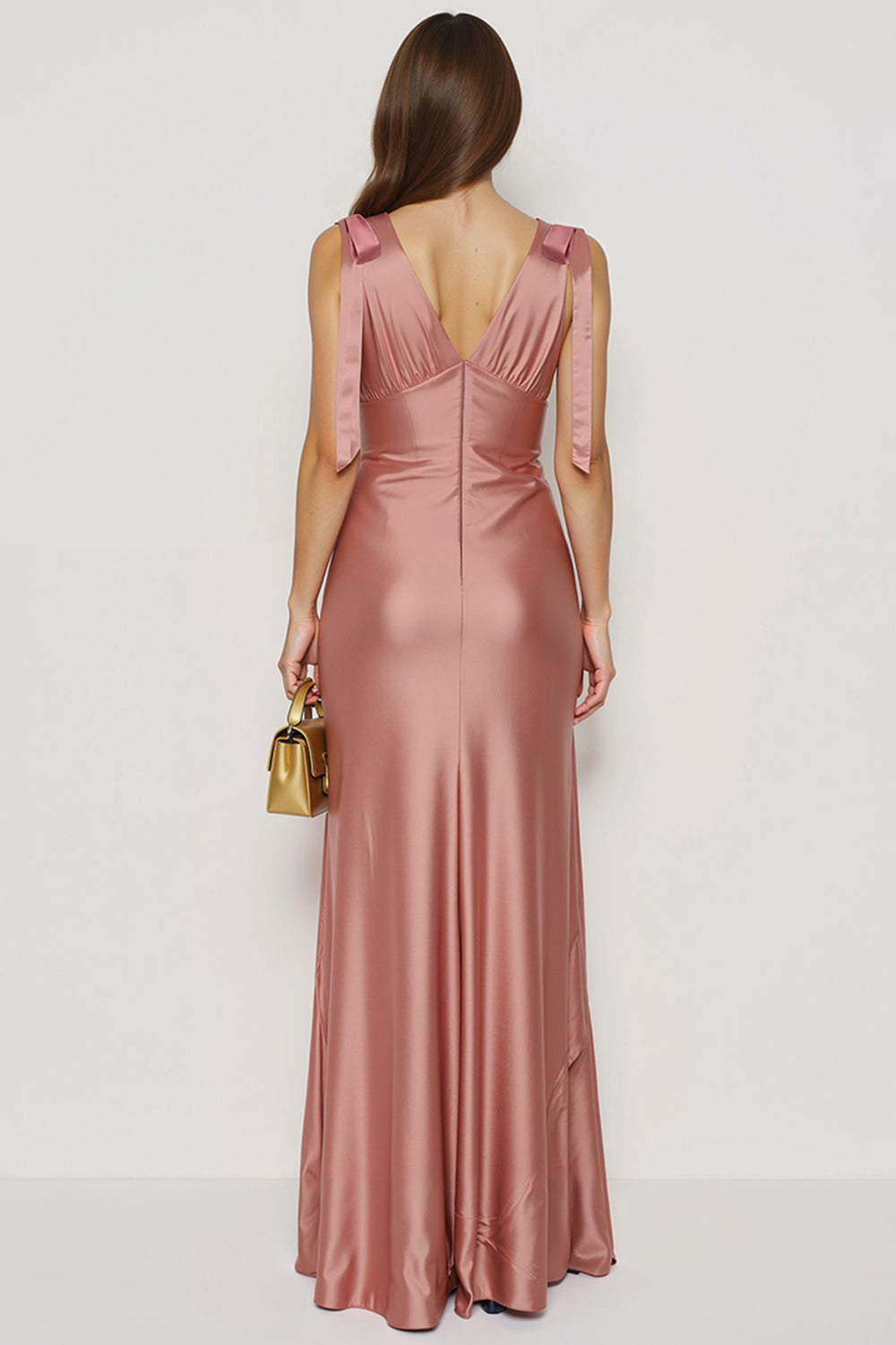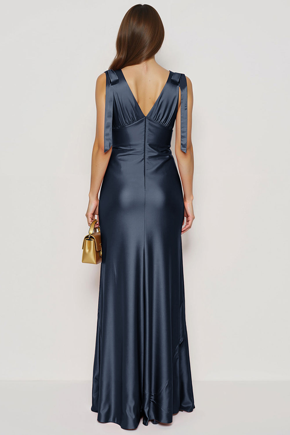 Navy Mermaid V Neck Satin Long Wedding Guest Dress