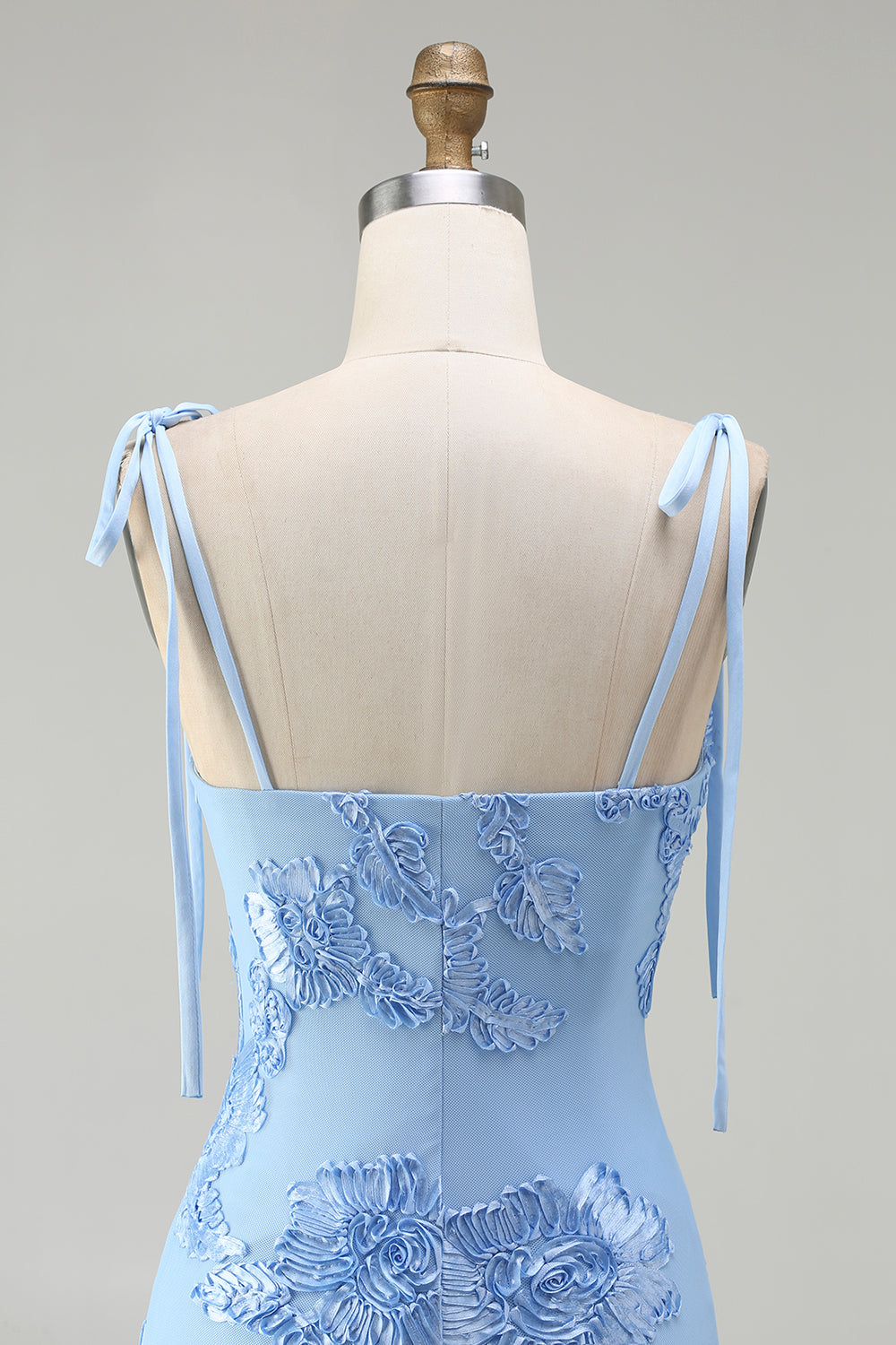 Light Blue Mermaid Spaghetti Straps Long Prom Dress with Appliques