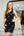 Glitter Corset Sheath Spaghetti Straps Little Black Dress with Slit