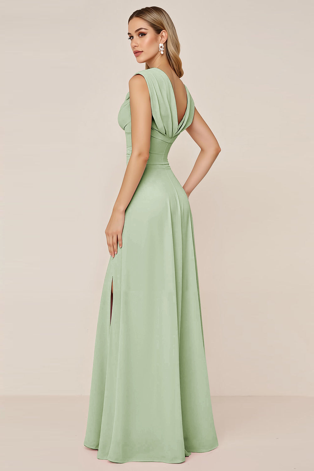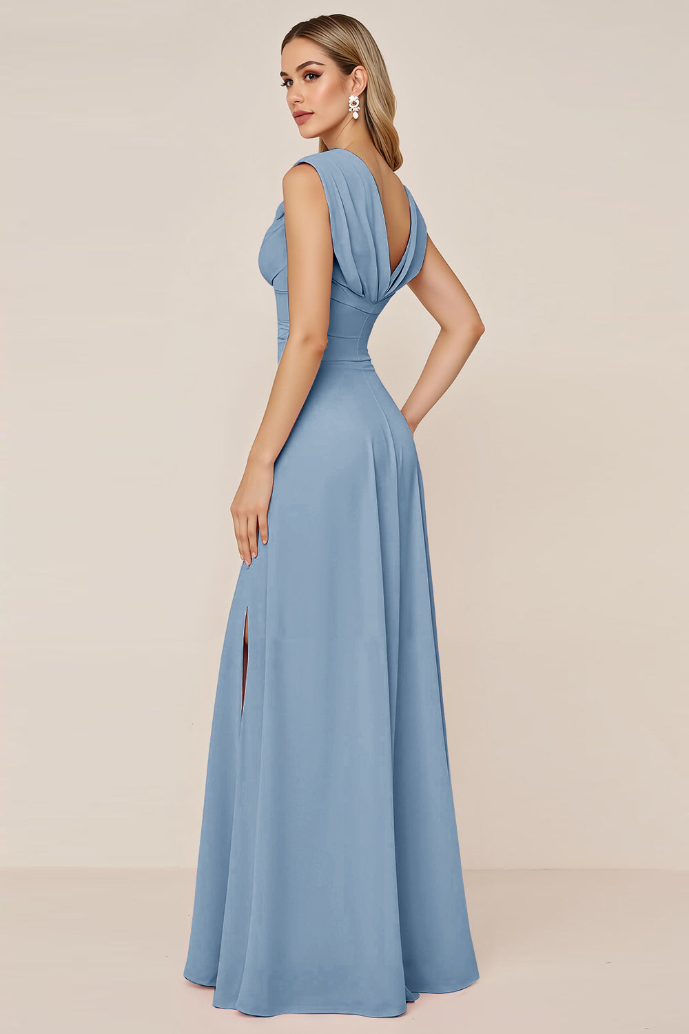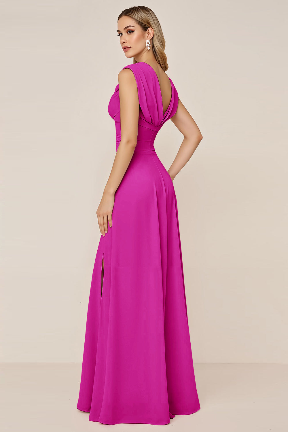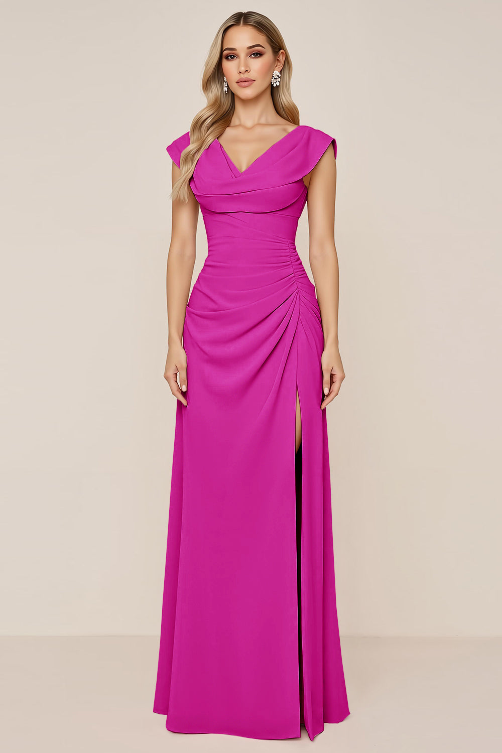 Candy Pink A Line Cowl Neck Long Bridesmaid Dress with Slit