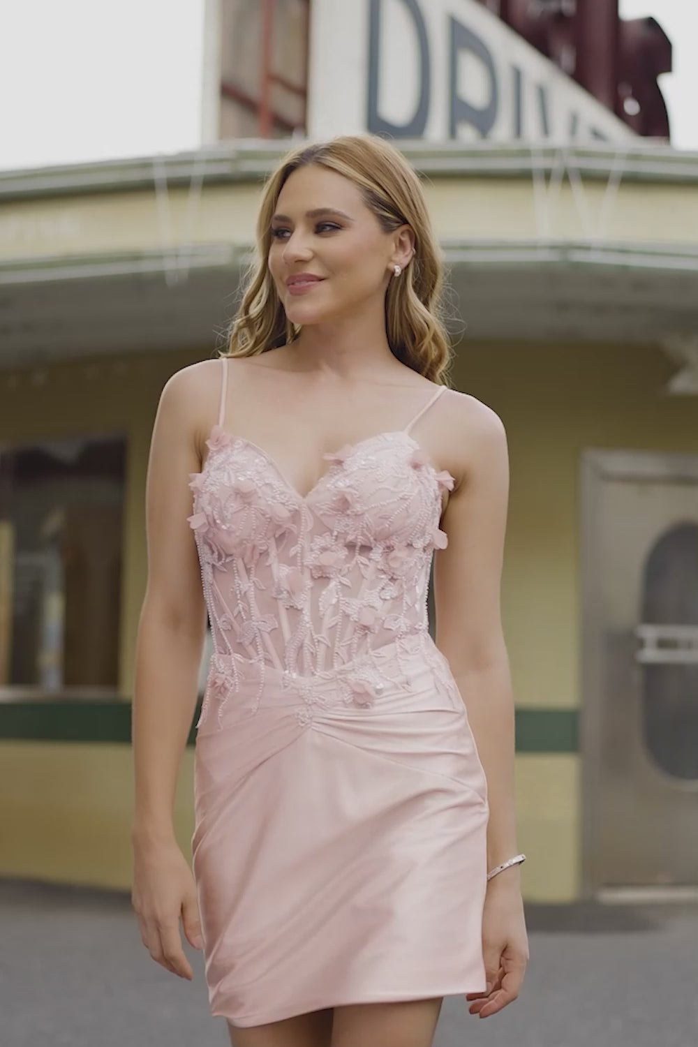 Pink Bodycon Satin Corset Beaded Short Homecoming Dress with Appliques
