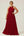 Red A Line V Neck Short Sleeve Split Front Floor Length Dress with Belt