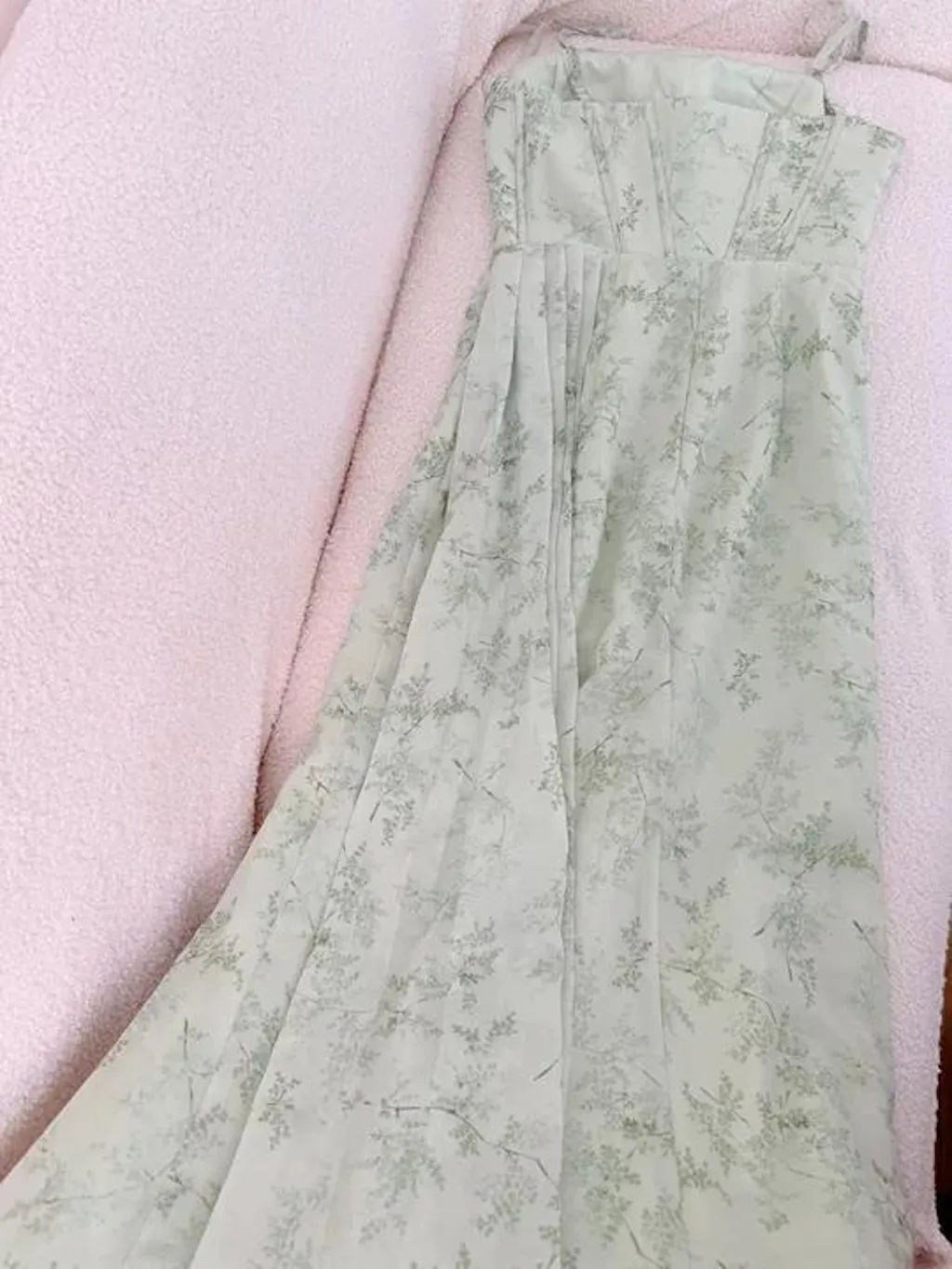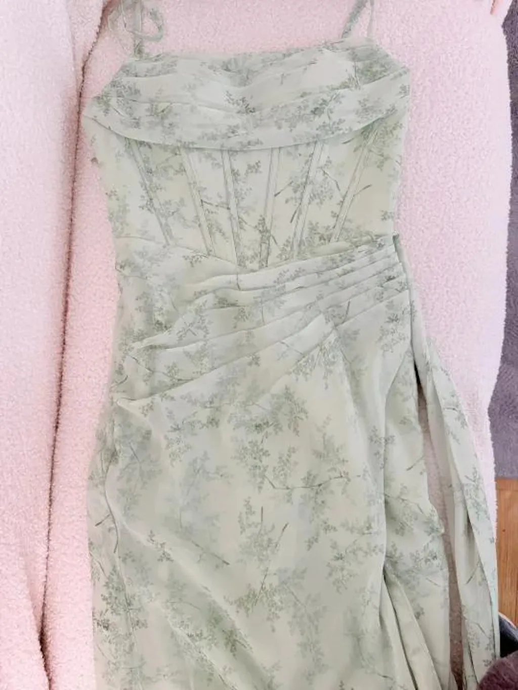 Dusty Sage Sheath Spaghetti Straps Pleated Long Plus Size Bridesmaid Dress with Slit