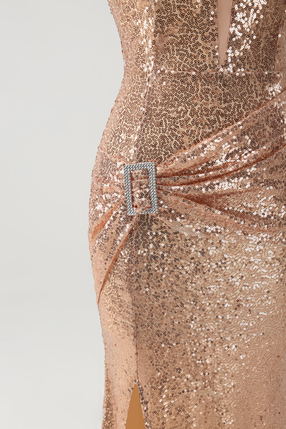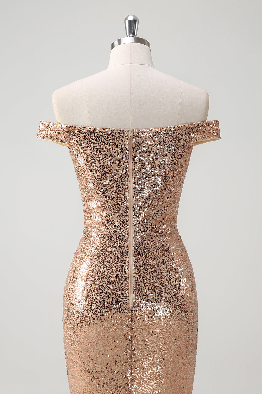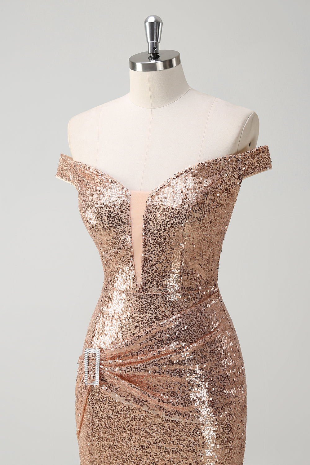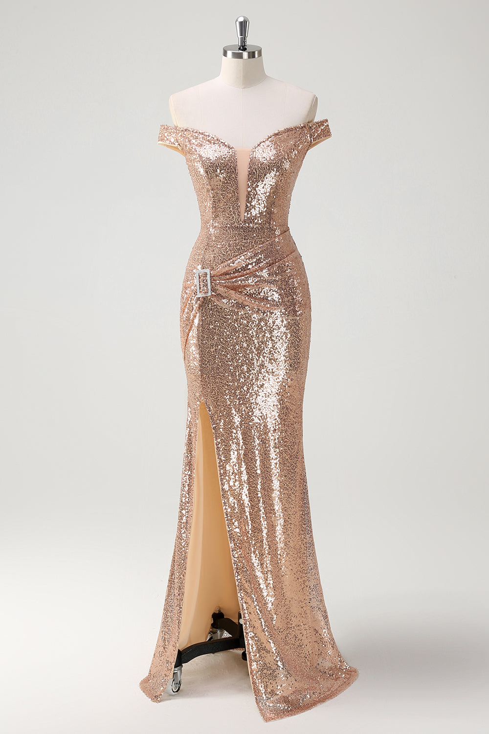 Sparkly Champagne Mermaid Off The Shoulder Sequins Party Dress with Slit